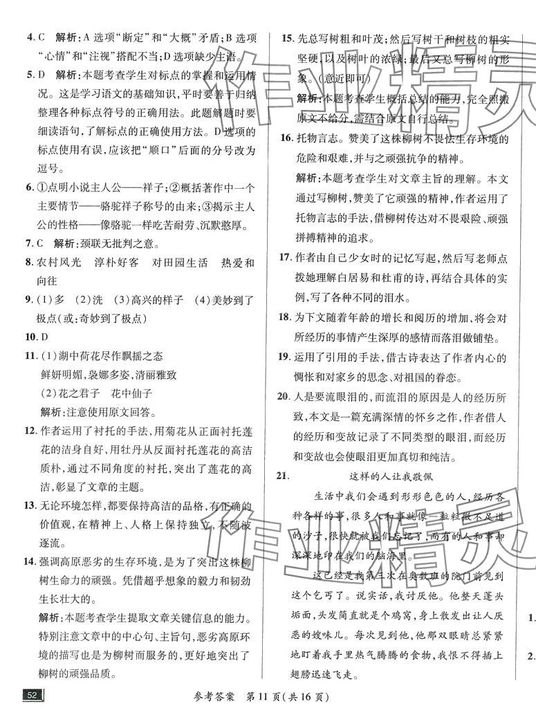 注:目前有些书本章节名称可能整理的还不是很完善,但都是按照顺序排列的,请同学们按照顺序仔细查找。练习册 2024年名师优考卷七年级语文下册人教版 答案主要是用来给同学们做完题方便对答案用的,请勿直接抄袭。