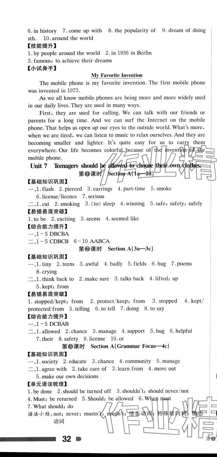 注:目前有些书本章节名称可能整理的还不是很完善,但都是按照顺序排列的,请同学们按照顺序仔细查找。练习册 2024年全效学习学业评价方案九年级英语全一册人教版 答案主要是用来给同学们做完题方便对答案用的,请勿直接抄袭。