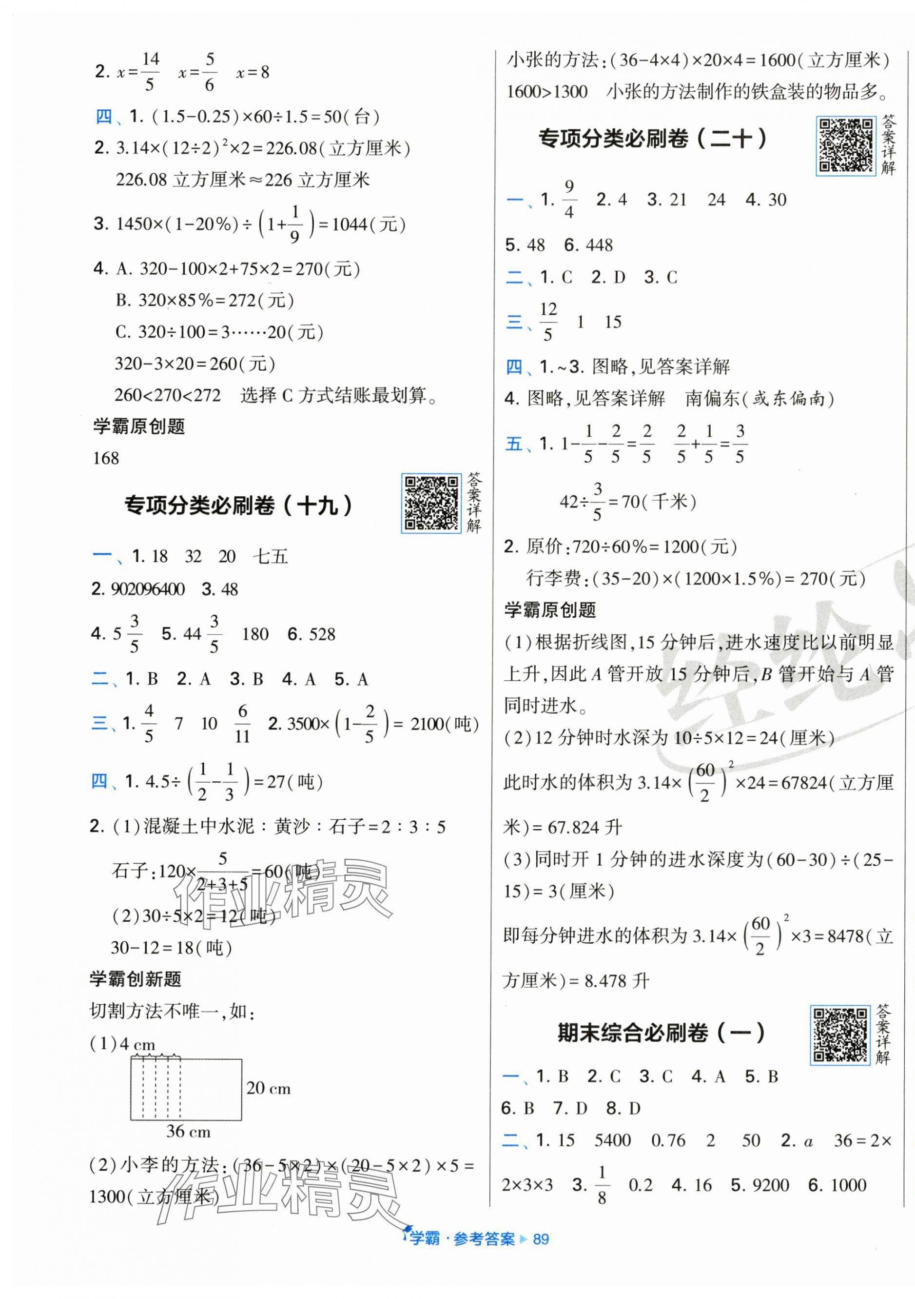 注:目前有些书本章节名称可能整理的还不是很完善,但都是按照顺序排列的,请同学们按照顺序仔细查找。练习册 2024年学霸期末必刷卷六年级数学下册苏教版 答案主要是用来给同学们做完题方便对答案用的,请勿直接抄袭。