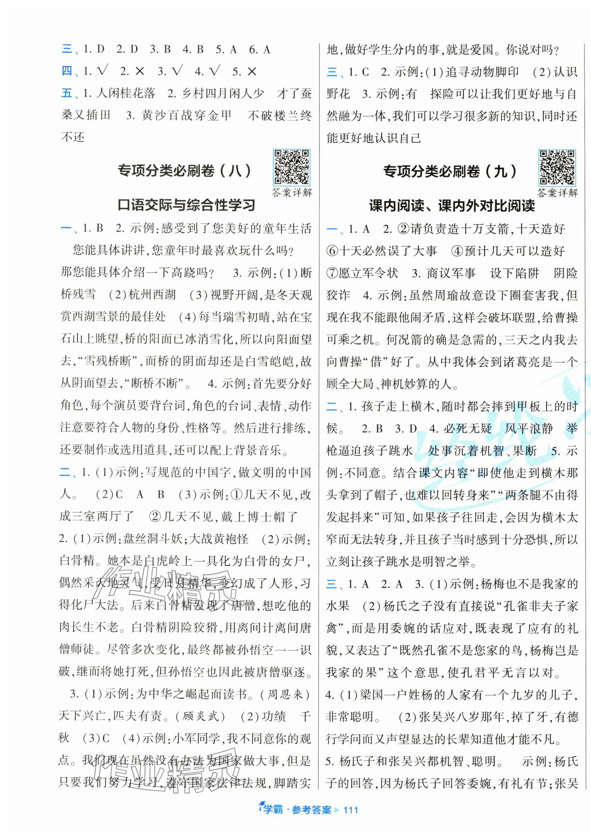 注:目前有些书本章节名称可能整理的还不是很完善,但都是按照顺序排列的,请同学们按照顺序仔细查找。练习册 2024年学霸期末必刷卷五年级语文下册人教版 答案主要是用来给同学们做完题方便对答案用的,请勿直接抄袭。