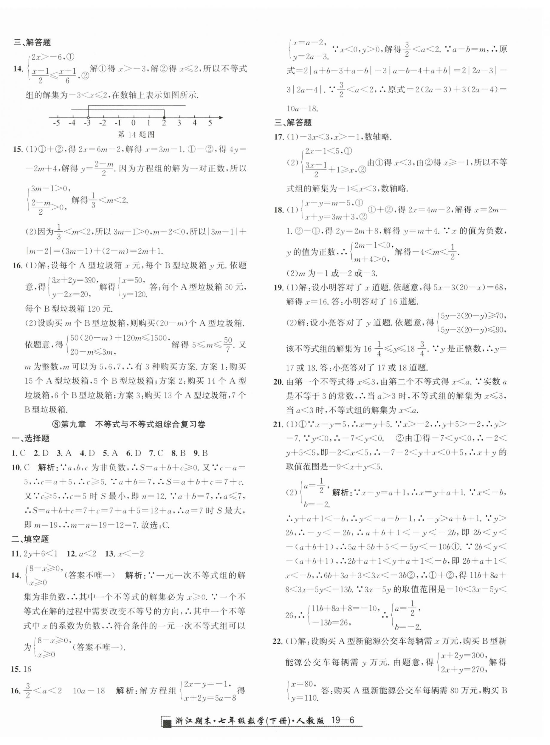 注:目前有些书本章节名称可能整理的还不是很完善,但都是按照顺序排列的,请同学们按照顺序仔细查找。练习册 2024年励耘书业浙江期末七年级数学下册人教版 答案主要是用来给同学们做完题方便对答案用的,请勿直接抄袭。