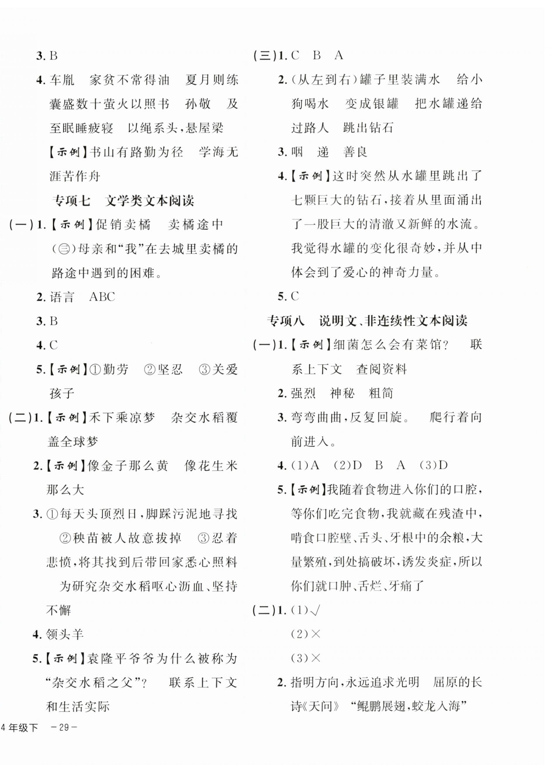 注:目前有些书本章节名称可能整理的还不是很完善,但都是按照顺序排列的,请同学们按照顺序仔细查找。练习册 2024年期末真题新卷四年级语文下册人教版浙江专版 答案主要是用来给同学们做完题方便对答案用的,请勿直接抄袭。