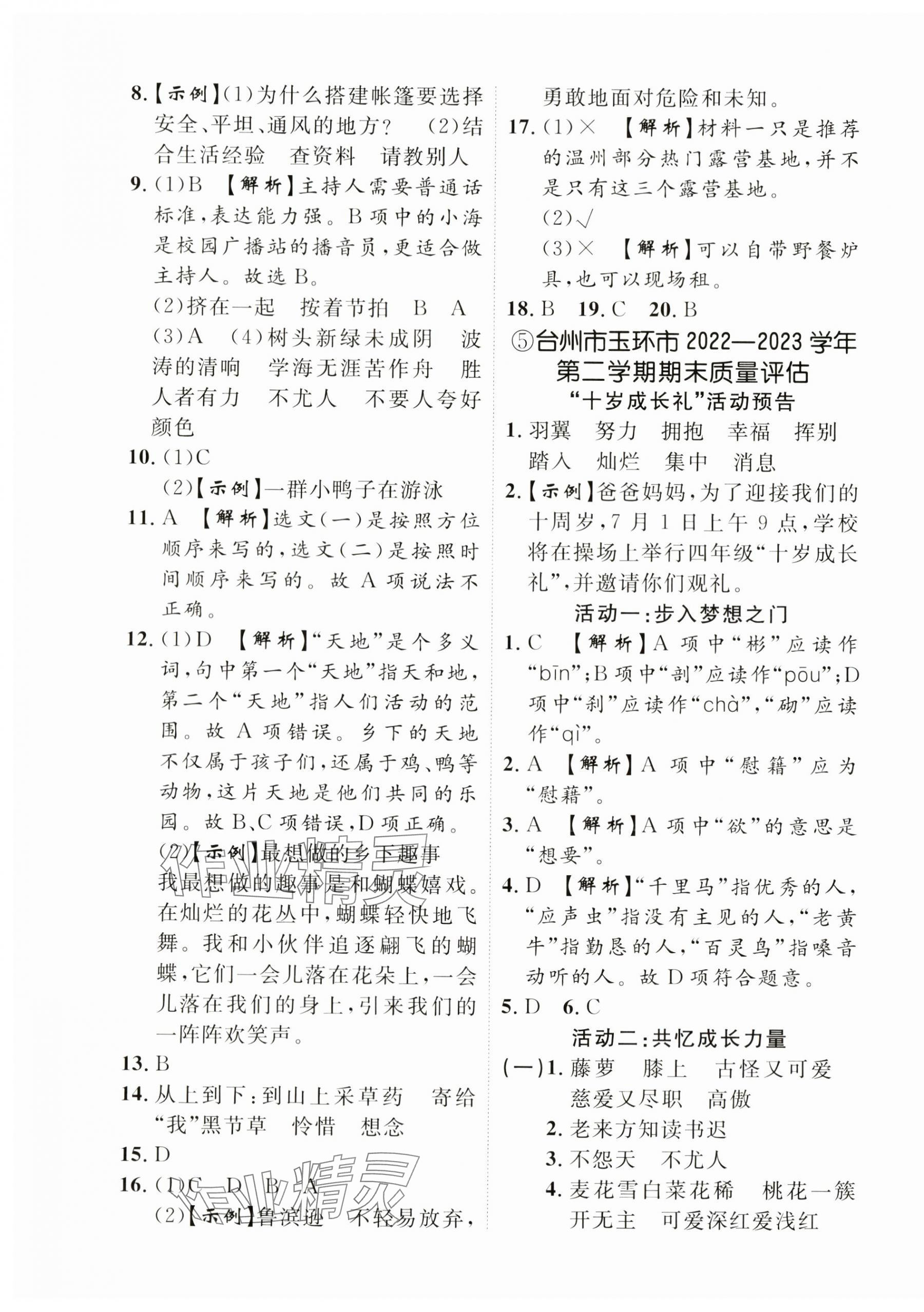 注:目前有些书本章节名称可能整理的还不是很完善,但都是按照顺序排列的,请同学们按照顺序仔细查找。练习册 2024年期末真题新卷四年级语文下册人教版浙江专版 答案主要是用来给同学们做完题方便对答案用的,请勿直接抄袭。