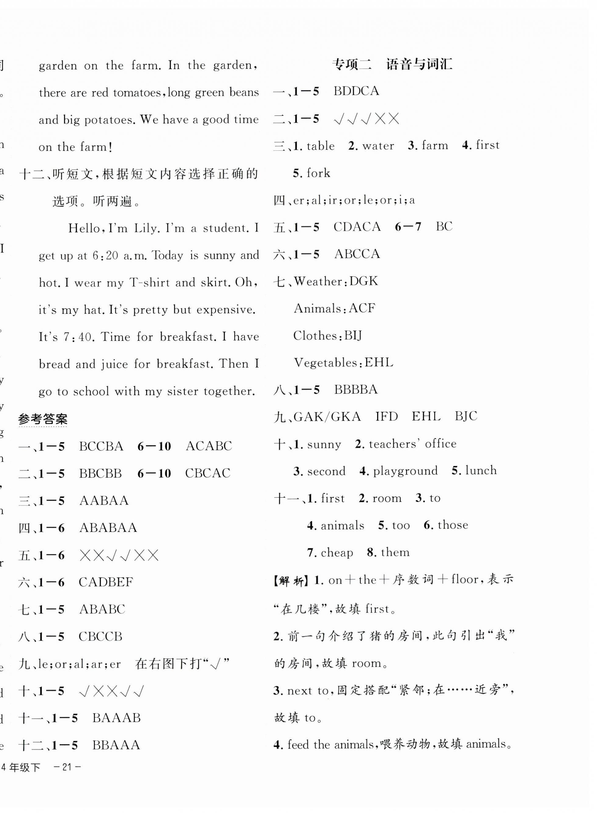 注:目前有些书本章节名称可能整理的还不是很完善,但都是按照顺序排列的,请同学们按照顺序仔细查找。练习册 2024年期末真题新卷四年级英语下册人教版浙江专版 答案主要是用来给同学们做完题方便对答案用的,请勿直接抄袭。