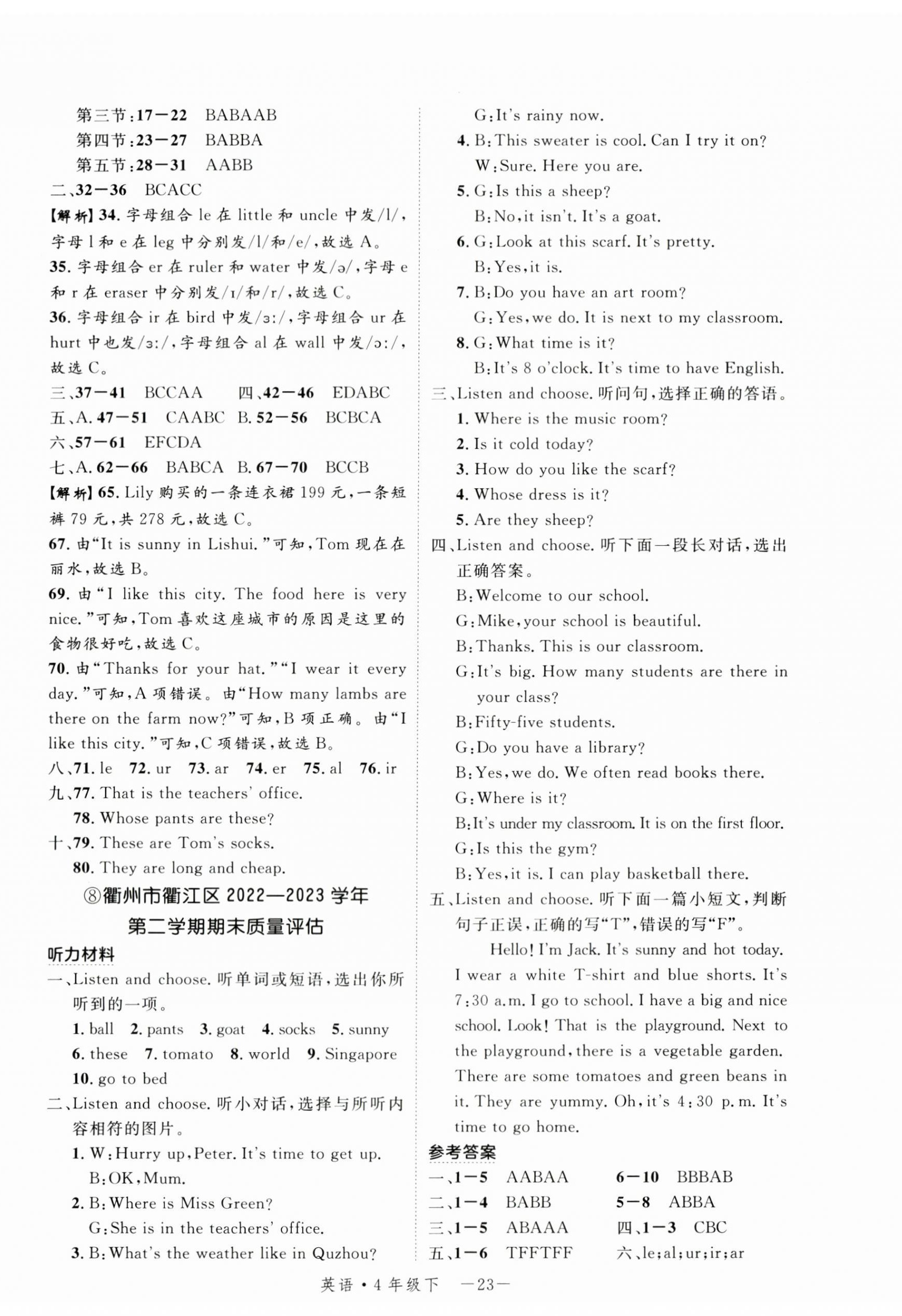 注:目前有些书本章节名称可能整理的还不是很完善,但都是按照顺序排列的,请同学们按照顺序仔细查找。练习册 2024年期末真题新卷四年级英语下册人教版浙江专版 答案主要是用来给同学们做完题方便对答案用的,请勿直接抄袭。