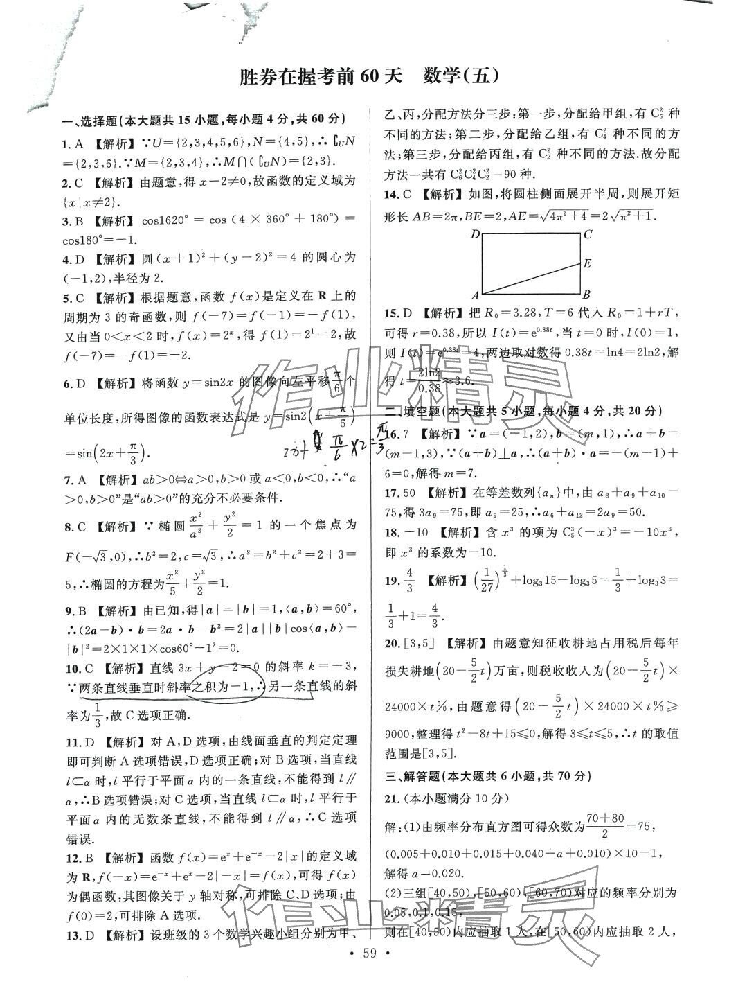 注:目前有些书本章节名称可能整理的还不是很完善,但都是按照顺序排列的,请同学们按照顺序仔细查找。练习册 2024年胜券在握考前60天数学 答案主要是用来给同学们做完题方便对答案用的,请勿直接抄袭。