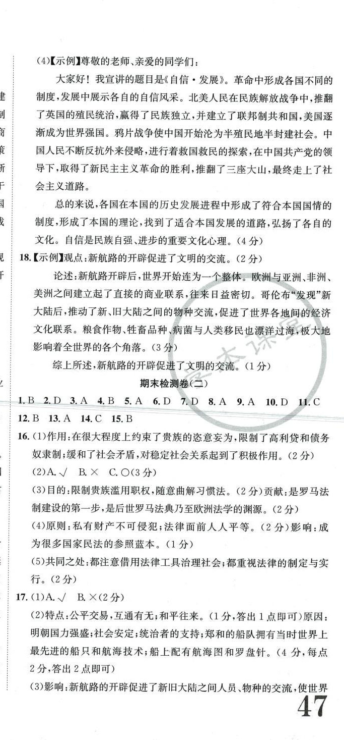 注:目前有些书本章节名称可能整理的还不是很完善,但都是按照顺序排列的,请同学们按照顺序仔细查找。练习册 2024年标准卷长江出版社九年级历史全一册人教版重庆专版 答案主要是用来给同学们做完题方便对答案用的,请勿直接抄袭。