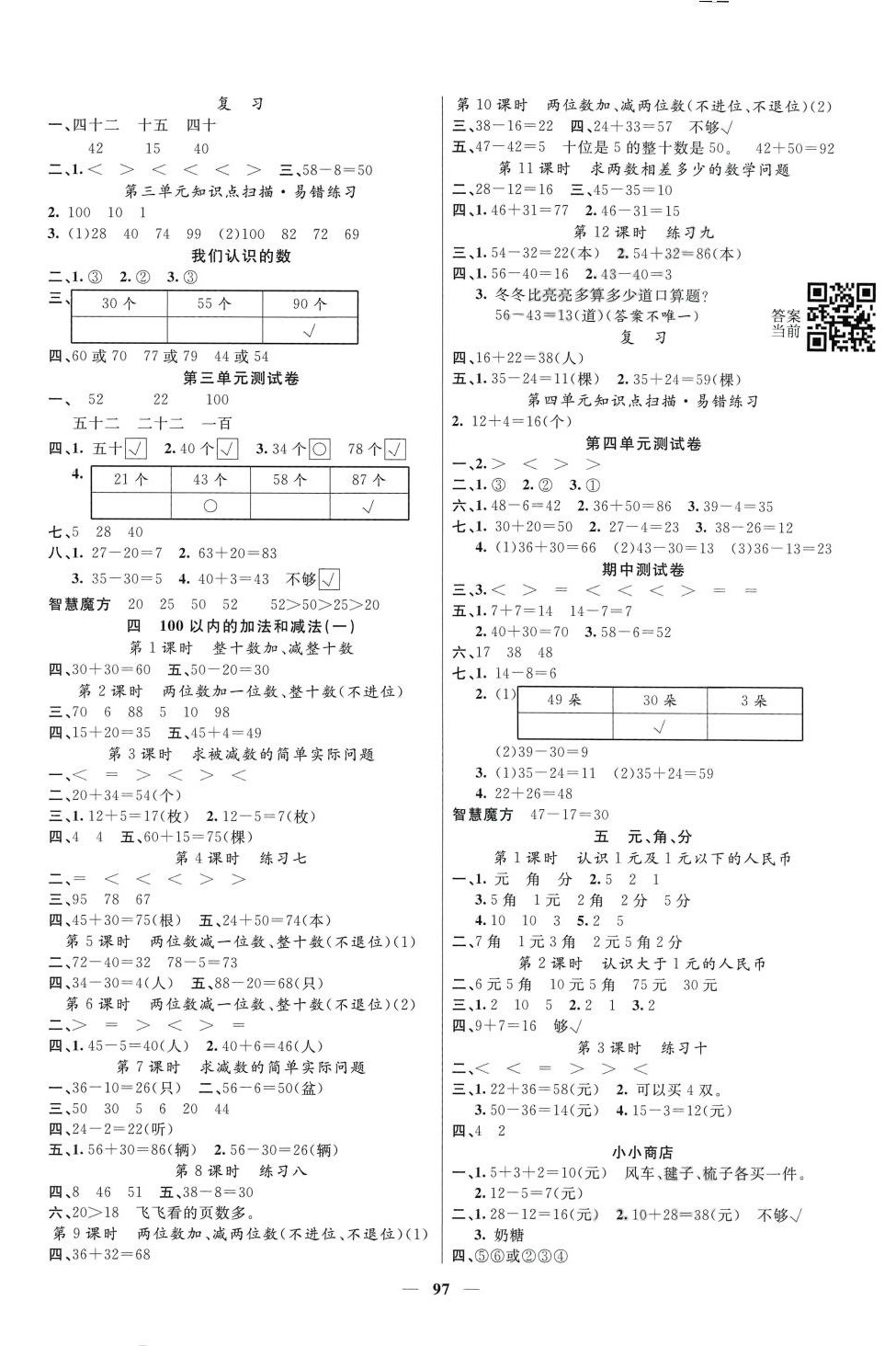 注:目前有些书本章节名称可能整理的还不是很完善,但都是按照顺序排列的,请同学们按照顺序仔细查找。练习册 2024年智慧树同步讲练测一年级数学下册苏教版 答案主要是用来给同学们做完题方便对答案用的,请勿直接抄袭。
