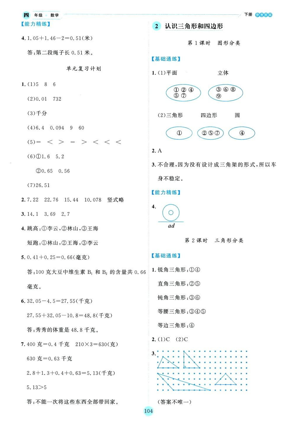 注:目前有些书本章节名称可能整理的还不是很完善,但都是按照顺序排列的,请同学们按照顺序仔细查找。练习册 2024年优秀生作业本四年级数学下册北师大版 答案主要是用来给同学们做完题方便对答案用的,请勿直接抄袭。