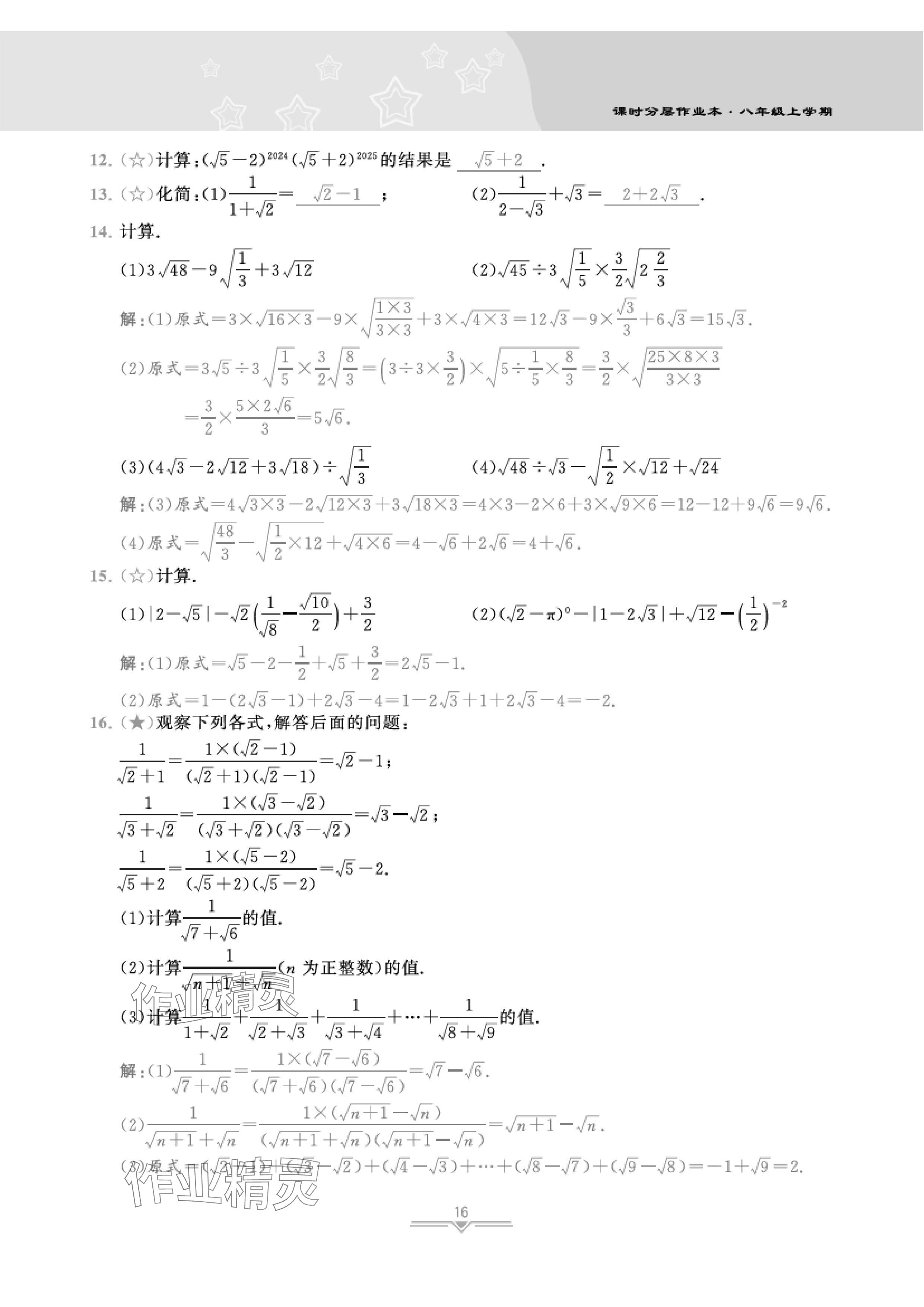 注:目前有些书本章节名称可能整理的还不是很完善,但都是按照顺序排列的,请同学们按照顺序仔细查找。练习册 2024年课时分层作业本八年级数学上册北师大版 答案主要是用来给同学们做完题方便对答案用的,请勿直接抄袭。