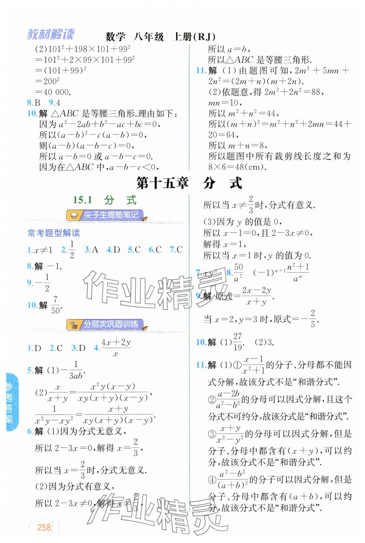 注:目前有些书本章节名称可能整理的还不是很完善,但都是按照顺序排列的,请同学们按照顺序仔细查找。练习册 2024年教材解读八年级数学上册人教版 答案主要是用来给同学们做完题方便对答案用的,请勿直接抄袭。