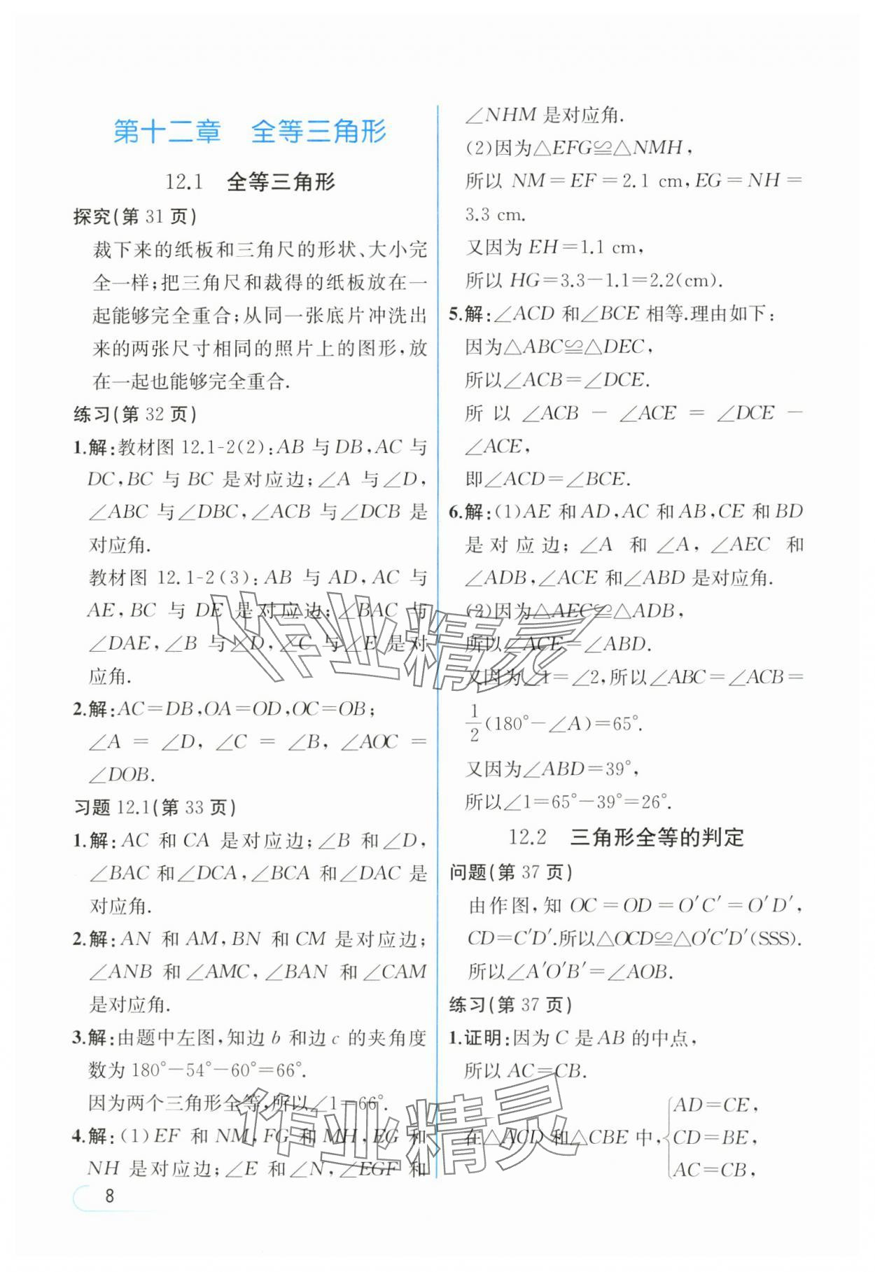 注:目前有些书本章节名称可能整理的还不是很完善,但都是按照顺序排列的,请同学们按照顺序仔细查找。练习册 2024年教材解读八年级数学上册人教版 答案主要是用来给同学们做完题方便对答案用的,请勿直接抄袭。