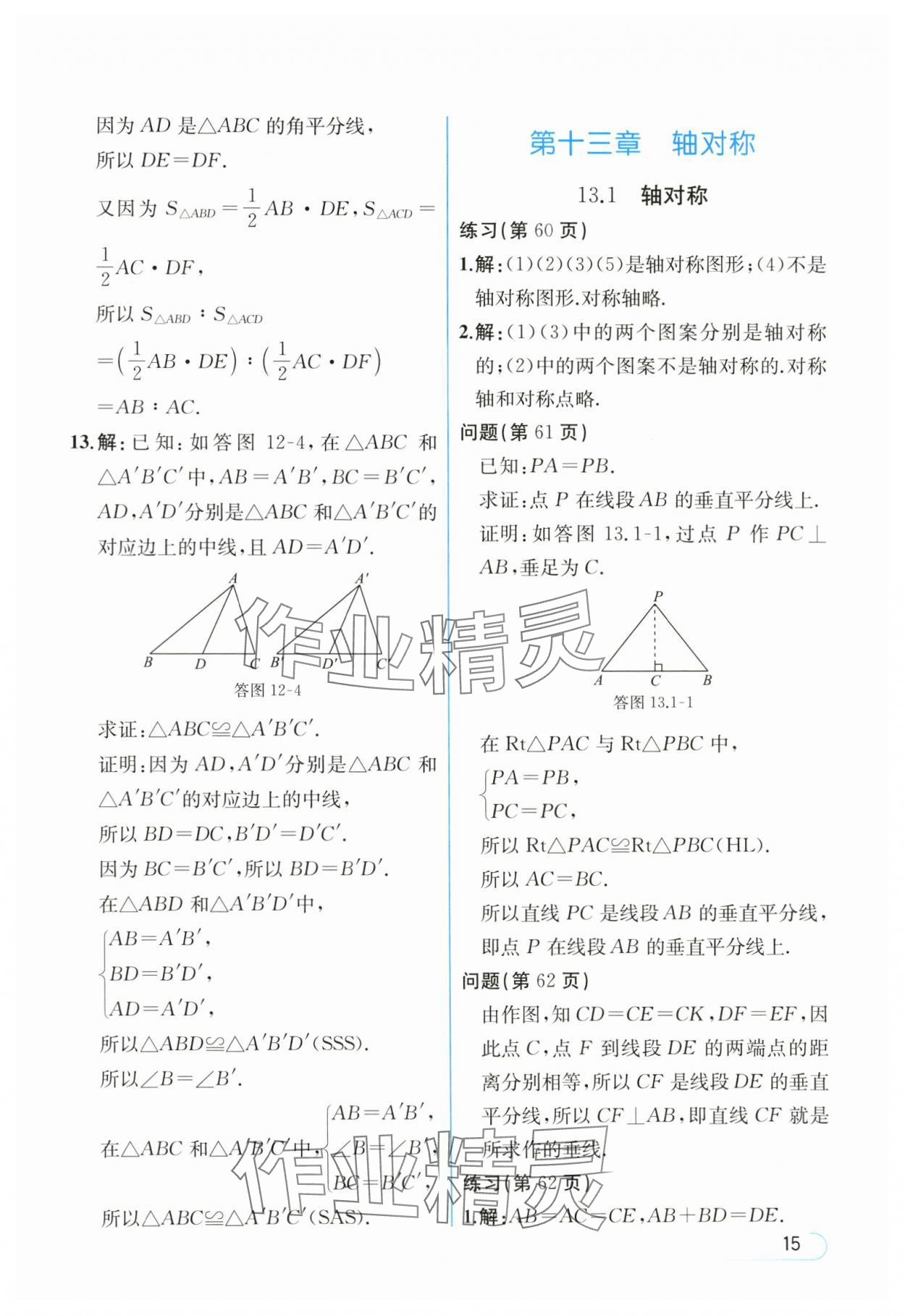 注:目前有些书本章节名称可能整理的还不是很完善,但都是按照顺序排列的,请同学们按照顺序仔细查找。练习册 2024年教材解读八年级数学上册人教版 答案主要是用来给同学们做完题方便对答案用的,请勿直接抄袭。