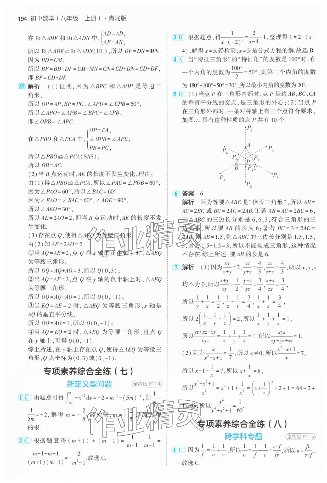 注:目前有些书本章节名称可能整理的还不是很完善,但都是按照顺序排列的,请同学们按照顺序仔细查找。练习册 2024年5年中考3年模拟初中数学八年级上册青岛版 答案主要是用来给同学们做完题方便对答案用的,请勿直接抄袭。