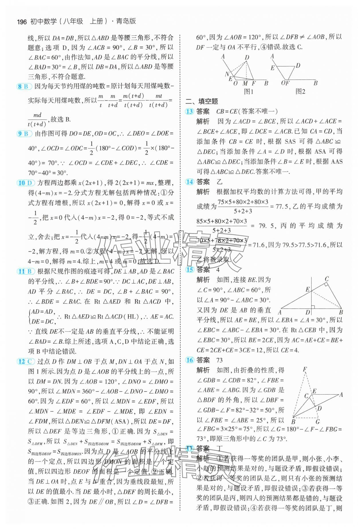 注:目前有些书本章节名称可能整理的还不是很完善,但都是按照顺序排列的,请同学们按照顺序仔细查找。练习册 2024年5年中考3年模拟初中数学八年级上册青岛版 答案主要是用来给同学们做完题方便对答案用的,请勿直接抄袭。