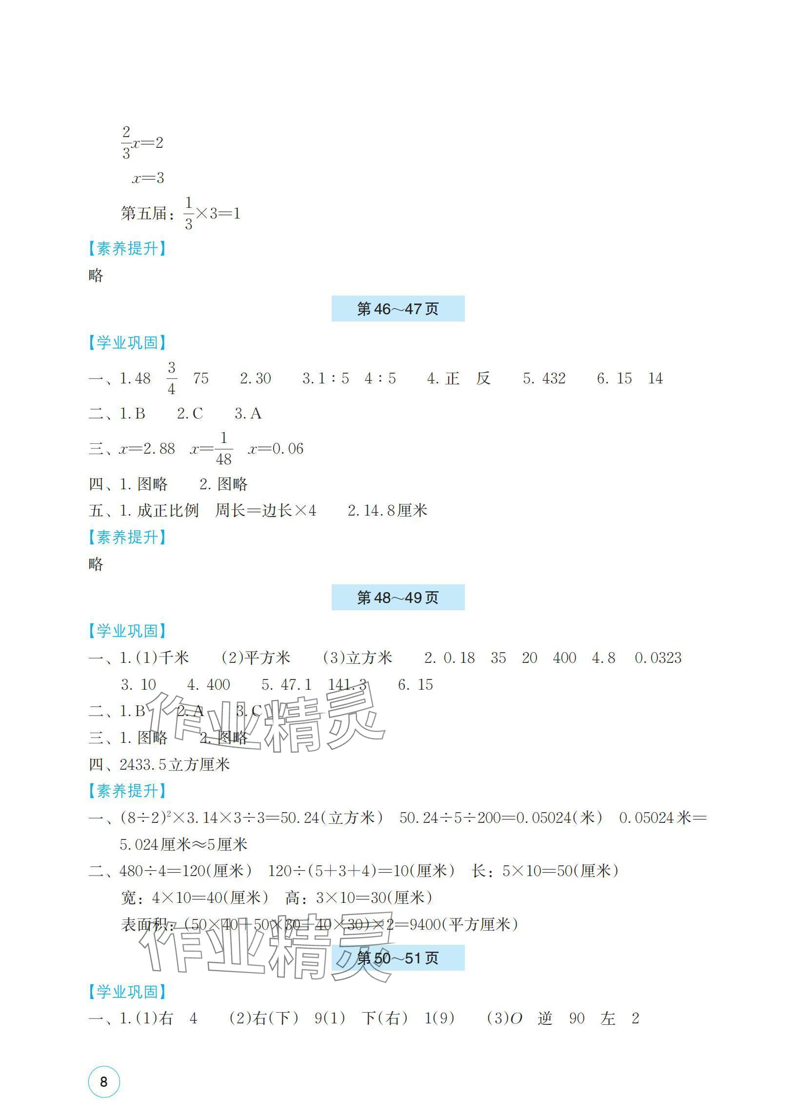注:目前有些书本章节名称可能整理的还不是很完善,但都是按照顺序排列的,请同学们按照顺序仔细查找。练习册 2024年暑假基础性作业六年级数学苏教版 答案主要是用来给同学们做完题方便对答案用的,请勿直接抄袭。