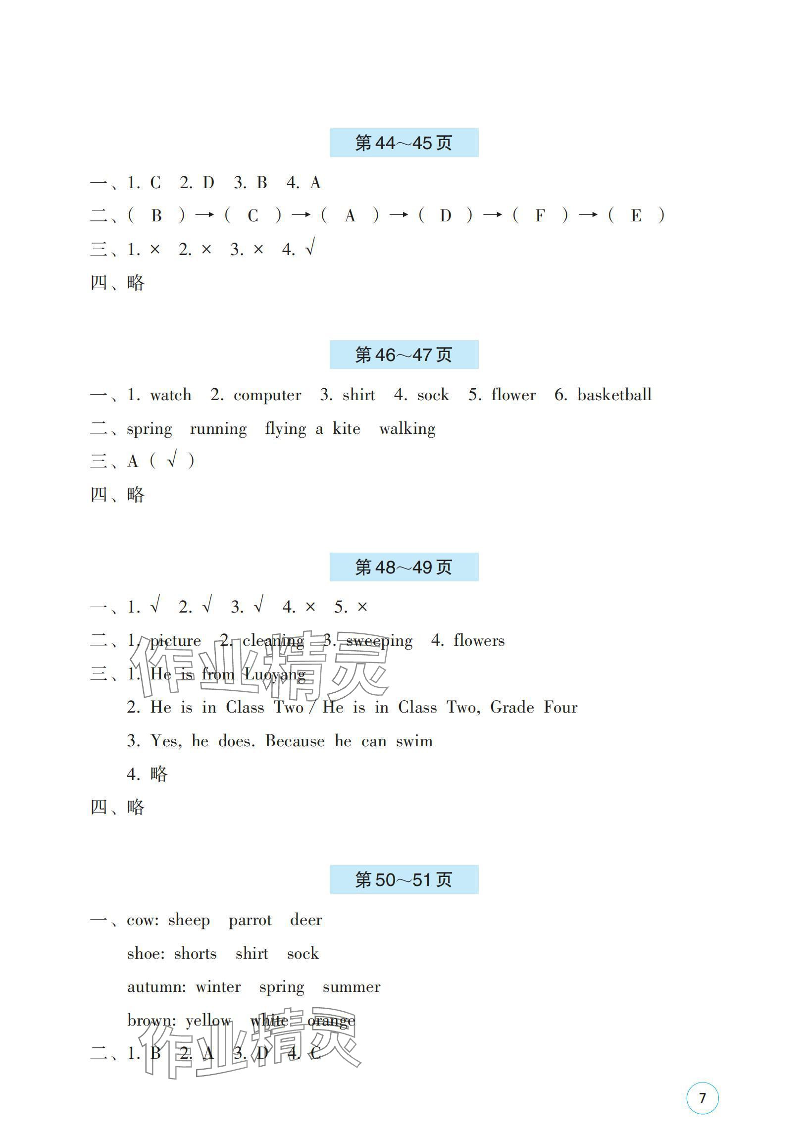 注:目前有些书本章节名称可能整理的还不是很完善,但都是按照顺序排列的,请同学们按照顺序仔细查找。练习册 2024年暑假基础性作业四年级英语科普版 答案主要是用来给同学们做完题方便对答案用的,请勿直接抄袭。