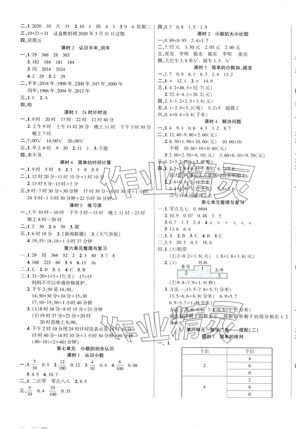 注:目前有些书本章节名称可能整理的还不是很完善,但都是按照顺序排列的,请同学们按照顺序仔细查找。练习册 2024年基础教研开心作业三年级数学下册人教版福建专版 答案主要是用来给同学们做完题方便对答案用的,请勿直接抄袭。