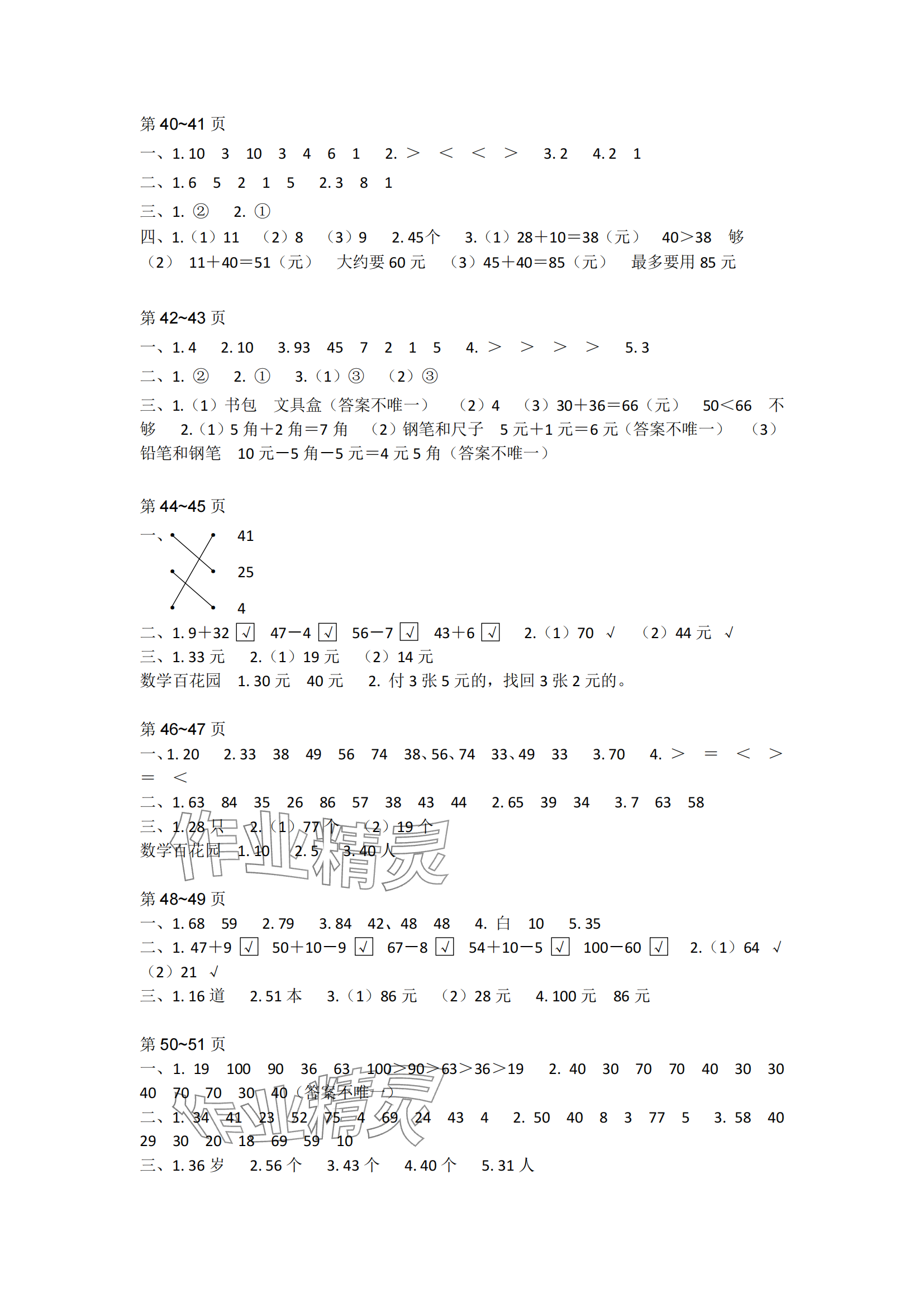 注:目前有些书本章节名称可能整理的还不是很完善,但都是按照顺序排列的,请同学们按照顺序仔细查找。练习册 2024年快乐暑假江苏凤凰教育出版社一年级数学 答案主要是用来给同学们做完题方便对答案用的,请勿直接抄袭。