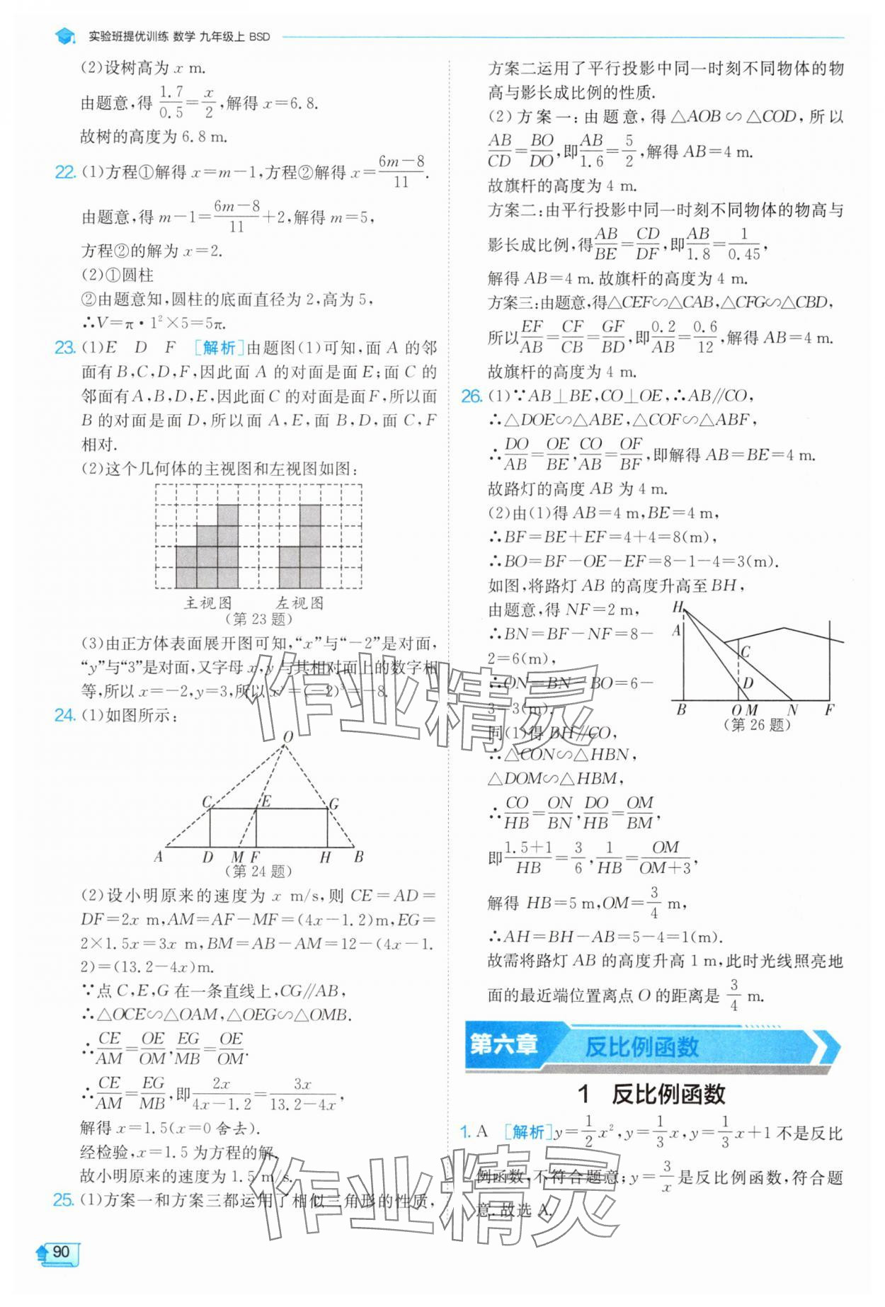 注:目前有些书本章节名称可能整理的还不是很完善,但都是按照顺序排列的,请同学们按照顺序仔细查找。练习册 2024年实验班提优训练九年级数学上册北师大版 答案主要是用来给同学们做完题方便对答案用的,请勿直接抄袭。