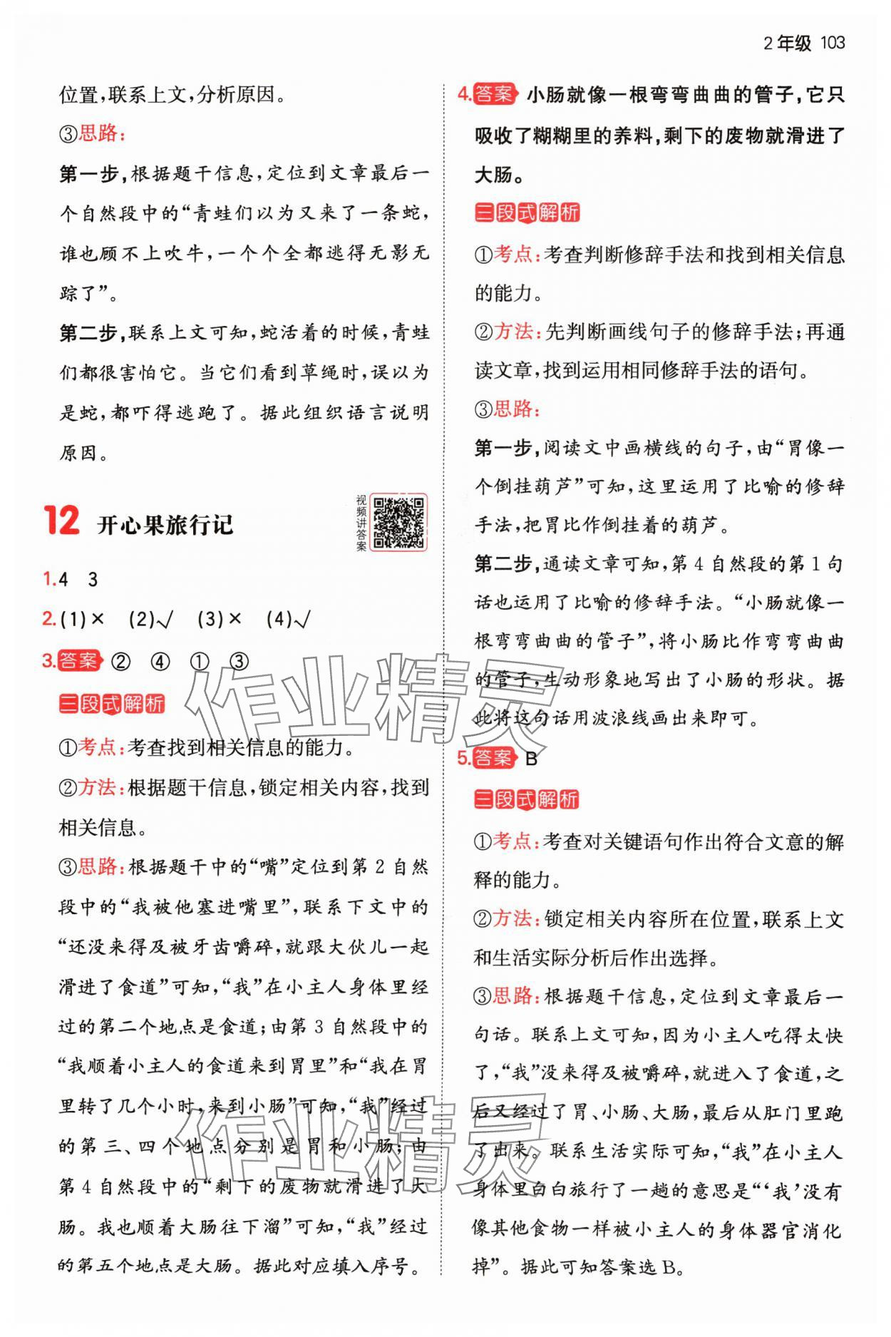 注:目前有些书本章节名称可能整理的还不是很完善,但都是按照顺序排列的,请同学们按照顺序仔细查找。练习册2024年小学生阅读真题80篇二年级语文答案主要是用来给同学们做完题方便对答案用的,请勿直接抄袭。