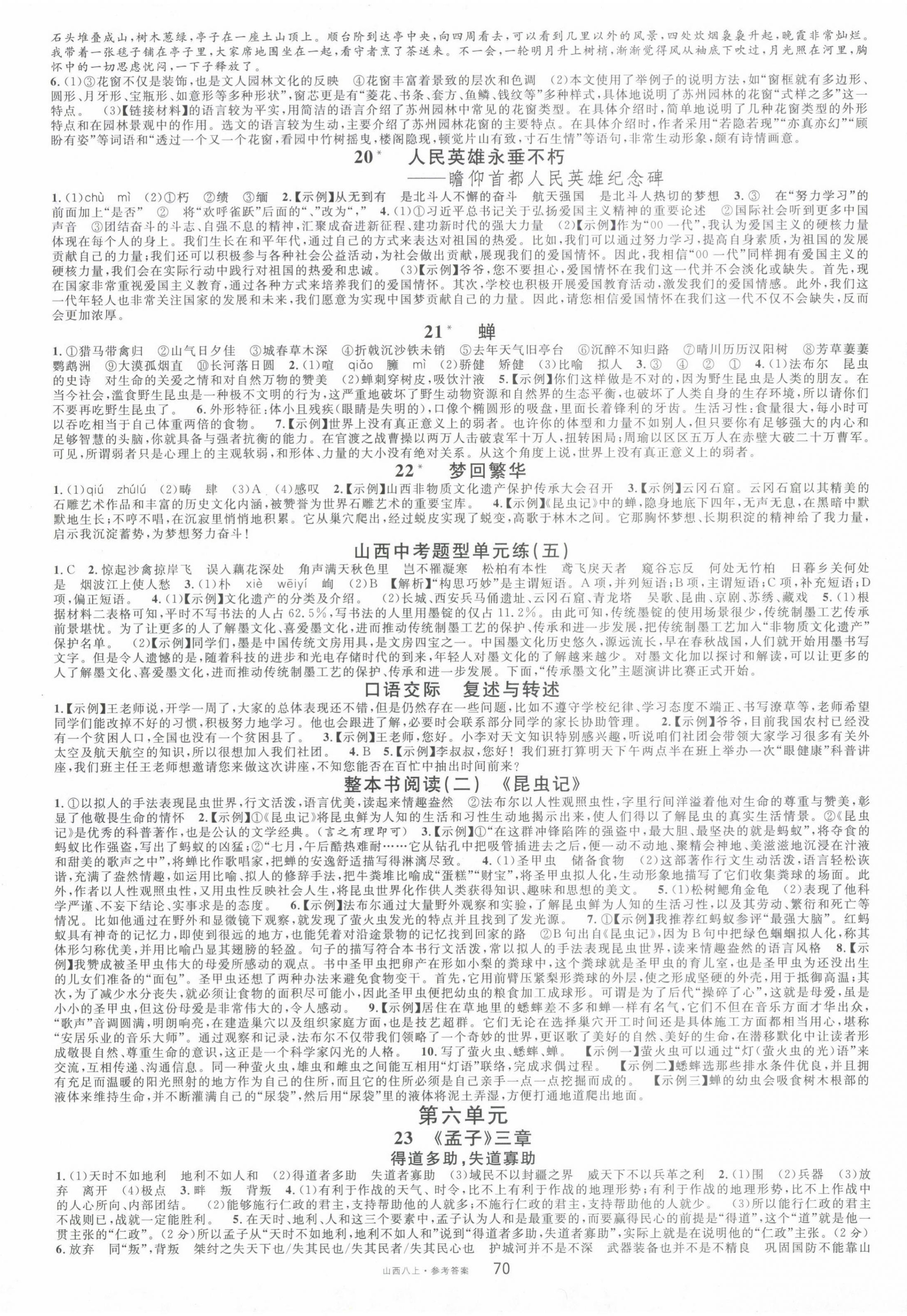 注:目前有些书本章节名称可能整理的还不是很完善,但都是按照顺序排列的,请同学们按照顺序仔细查找。练习册 2024年名校课堂八年级语文上册人教版山西专版 答案主要是用来给同学们做完题方便对答案用的,请勿直接抄袭。