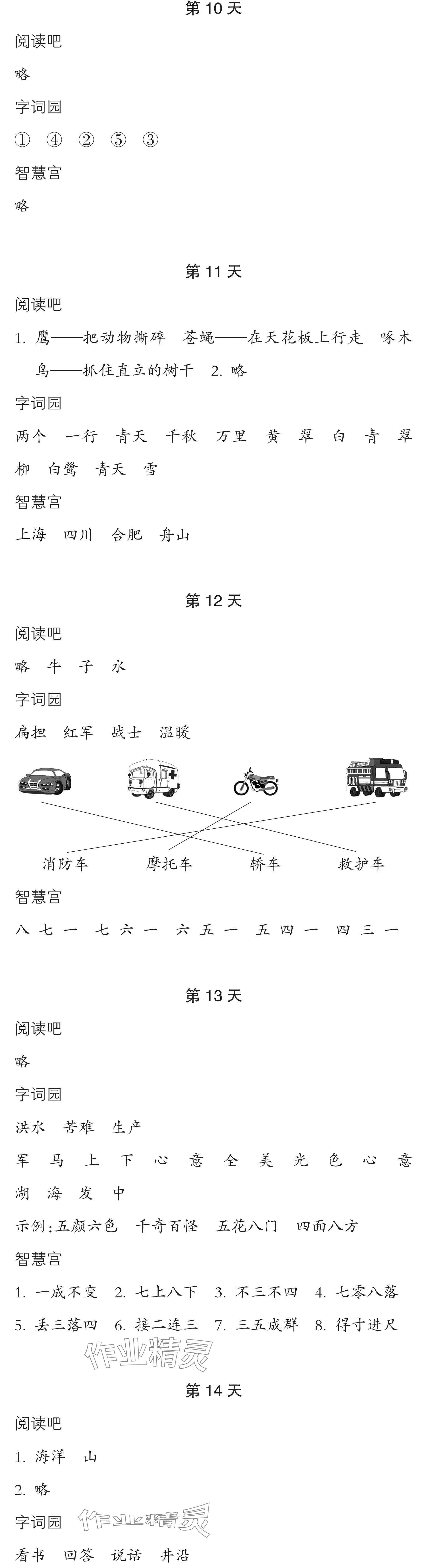 注:目前有些书本章节名称可能整理的还不是很完善,但都是按照顺序排列的,请同学们按照顺序仔细查找。练习册 2024年暑假作业本浙江教育出版社二年级语文 答案主要是用来给同学们做完题方便对答案用的,请勿直接抄袭。