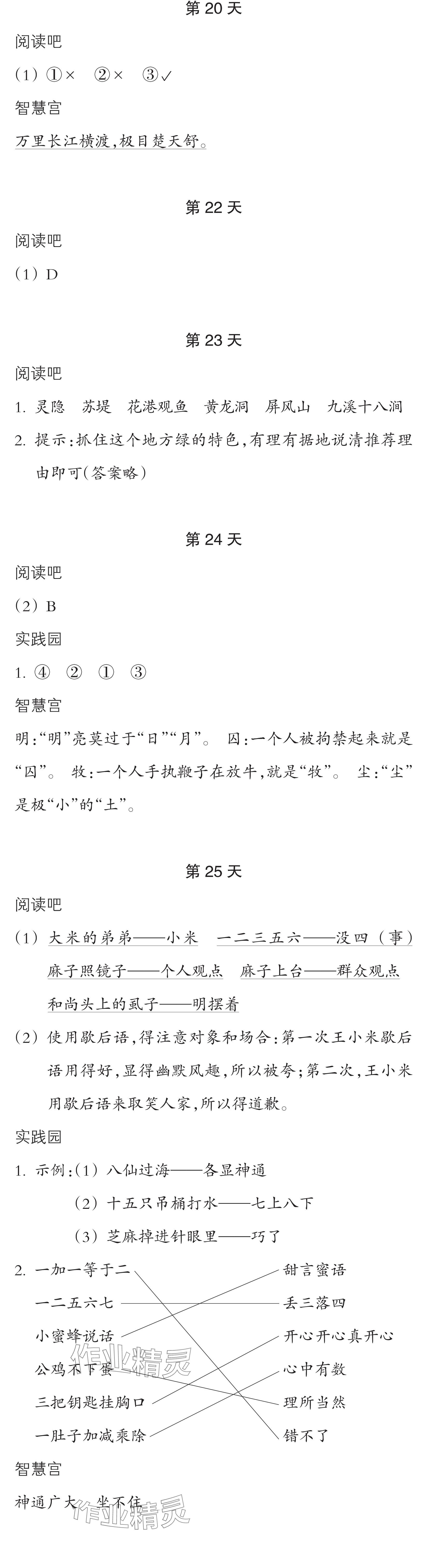 注:目前有些书本章节名称可能整理的还不是很完善,但都是按照顺序排列的,请同学们按照顺序仔细查找。练习册 2024年暑假作业本浙江教育出版社四年级语文英语 答案主要是用来给同学们做完题方便对答案用的,请勿直接抄袭。