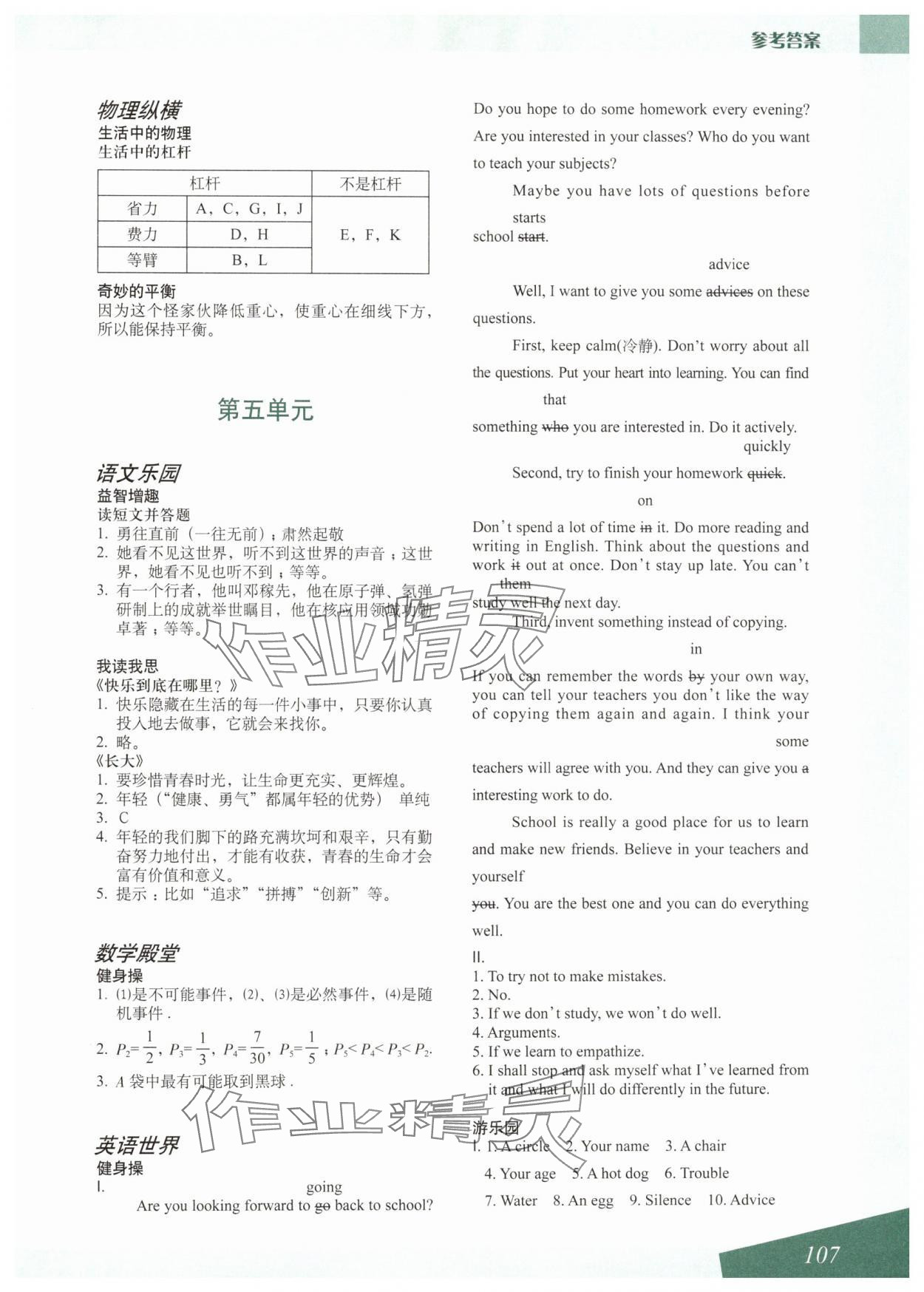 相关练习册答案