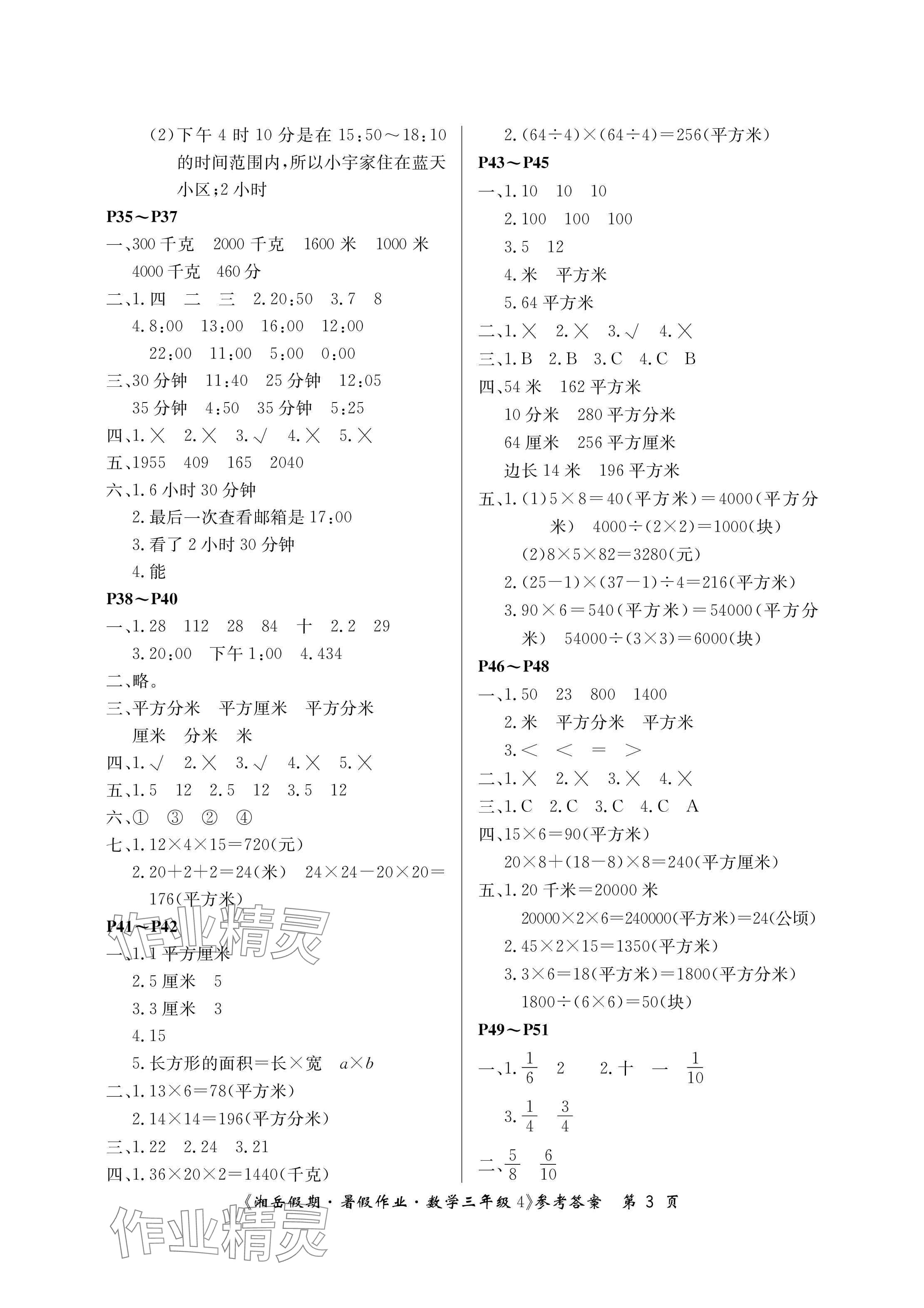 2024年湘岳假期暑假作业三年级数学苏教版第四版