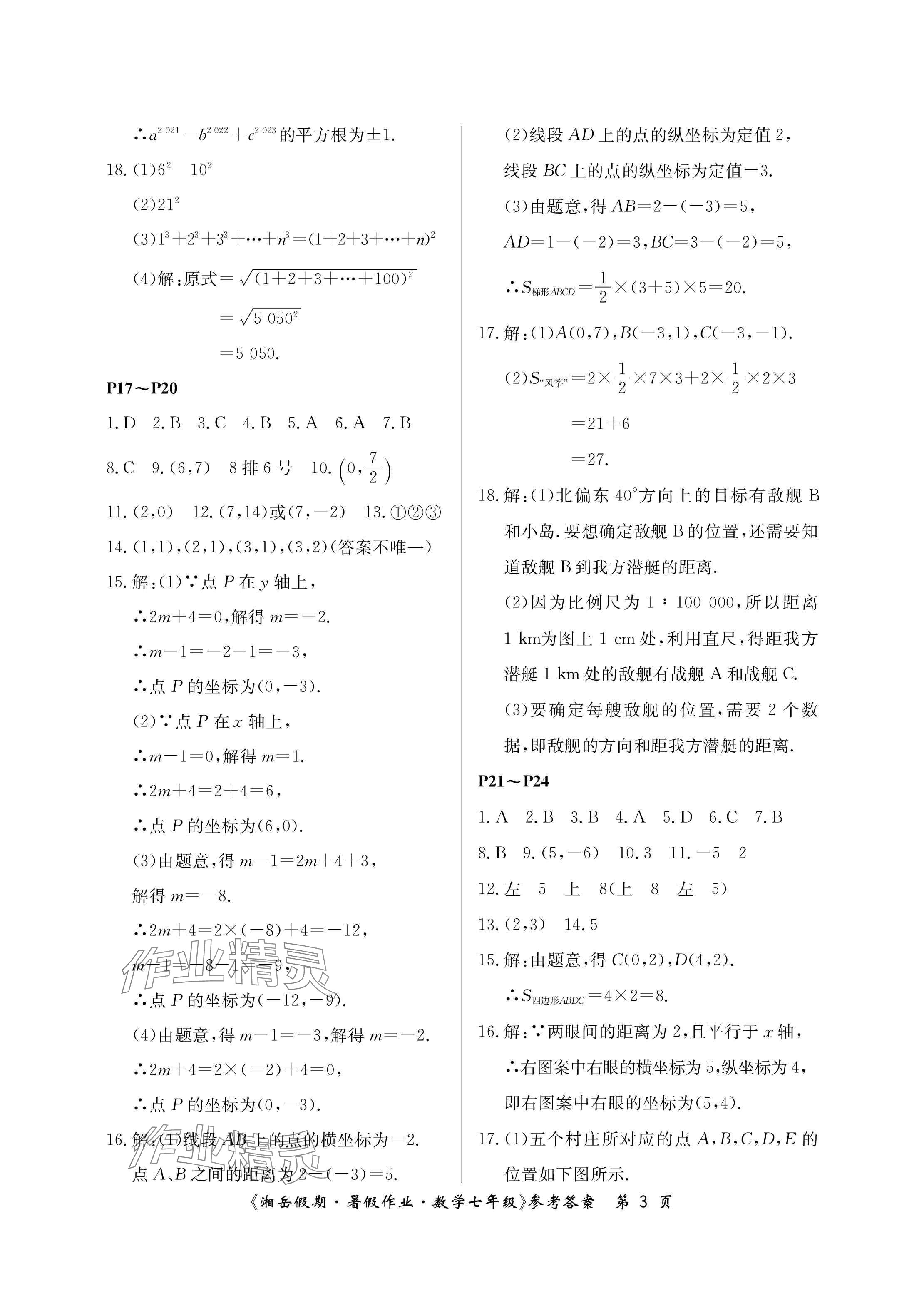 注:目前有些书本章节名称可能整理的还不是很完善,但都是按照顺序排列的,请同学们按照顺序仔细查找。练习册 2024年湘岳假期暑假作业七年级数学全一册人教版 答案主要是用来给同学们做完题方便对答案用的,请勿直接抄袭。
