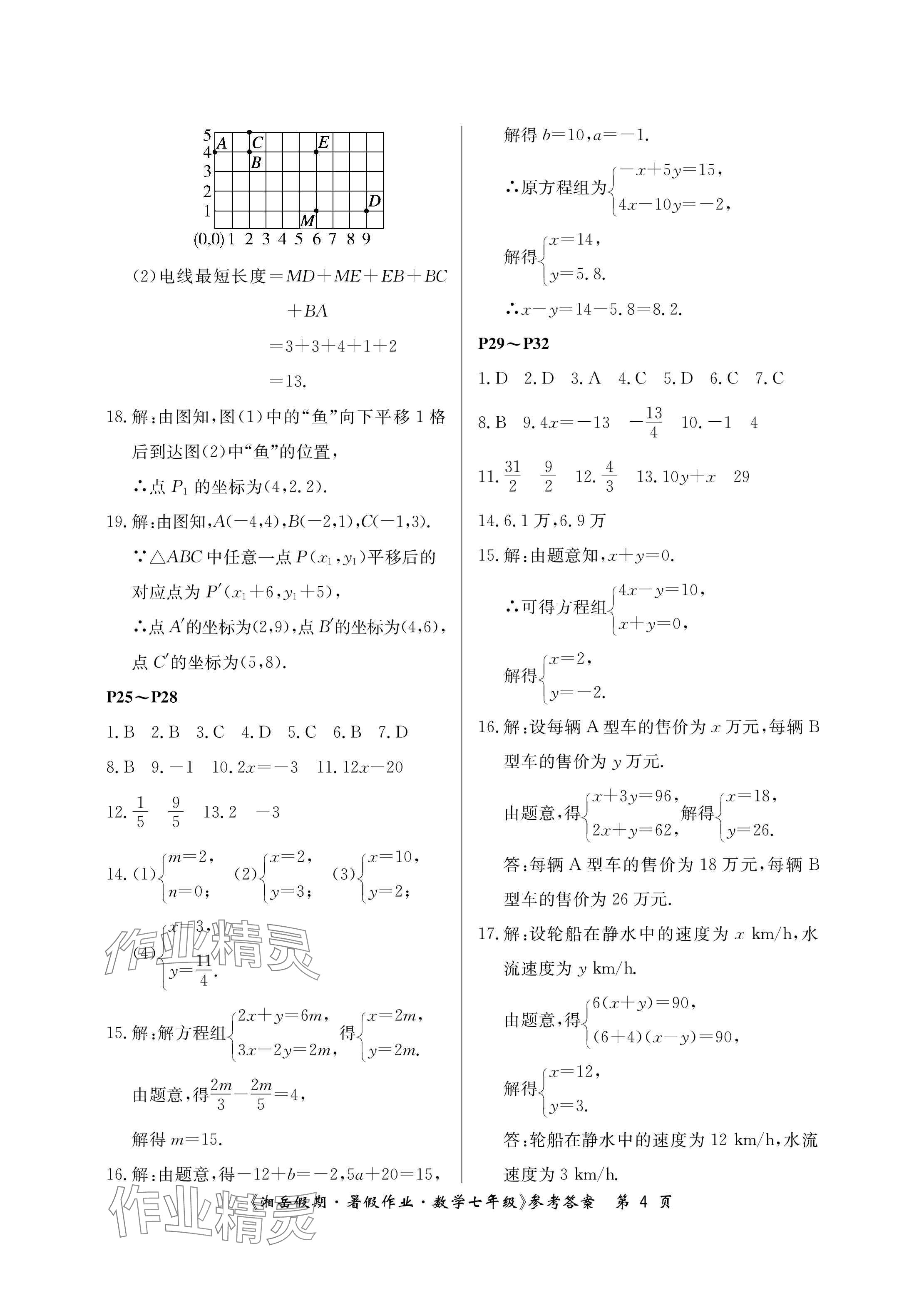 注:目前有些书本章节名称可能整理的还不是很完善,但都是按照顺序排列的,请同学们按照顺序仔细查找。练习册 2024年湘岳假期暑假作业七年级数学全一册人教版 答案主要是用来给同学们做完题方便对答案用的,请勿直接抄袭。