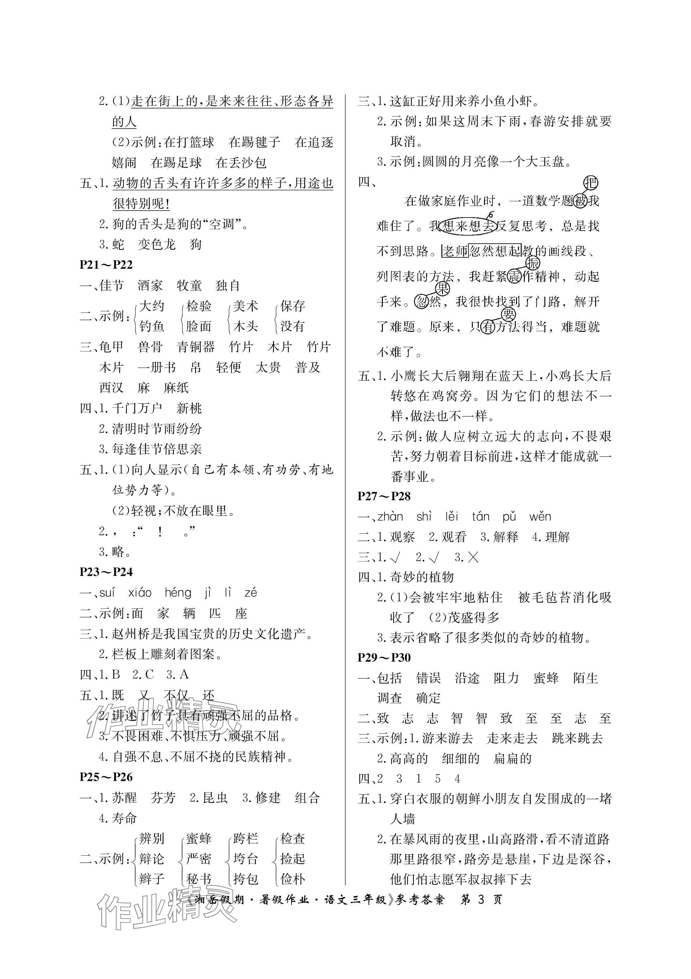注:目前有些书本章节名称可能整理的还不是很完善,但都是按照顺序排列的,请同学们按照顺序仔细查找。练习册 2024年湘岳假期暑假作业三年级语文人教版 答案主要是用来给同学们做完题方便对答案用的,请勿直接抄袭。