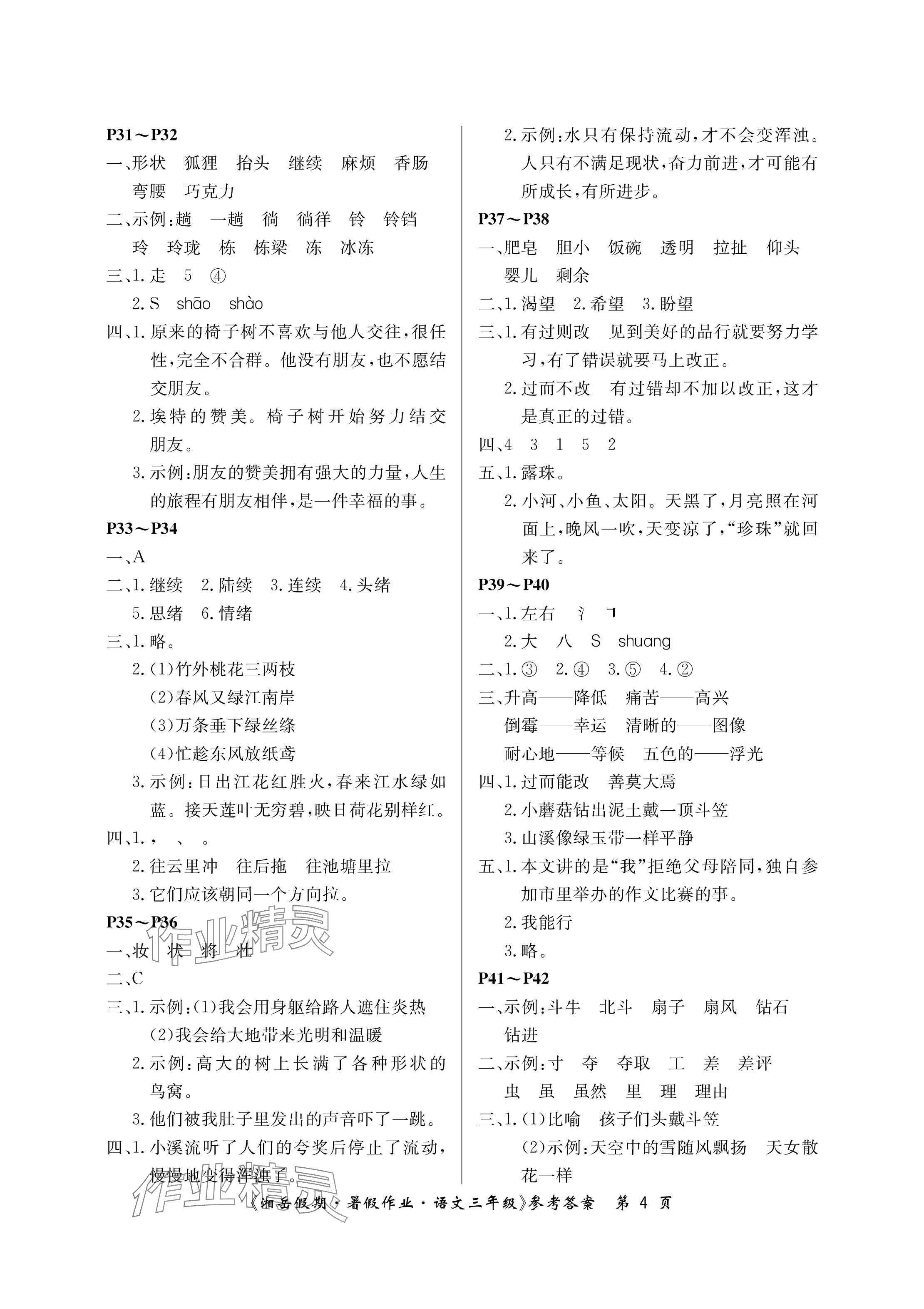 注:目前有些书本章节名称可能整理的还不是很完善,但都是按照顺序排列的,请同学们按照顺序仔细查找。练习册 2024年湘岳假期暑假作业三年级语文人教版 答案主要是用来给同学们做完题方便对答案用的,请勿直接抄袭。