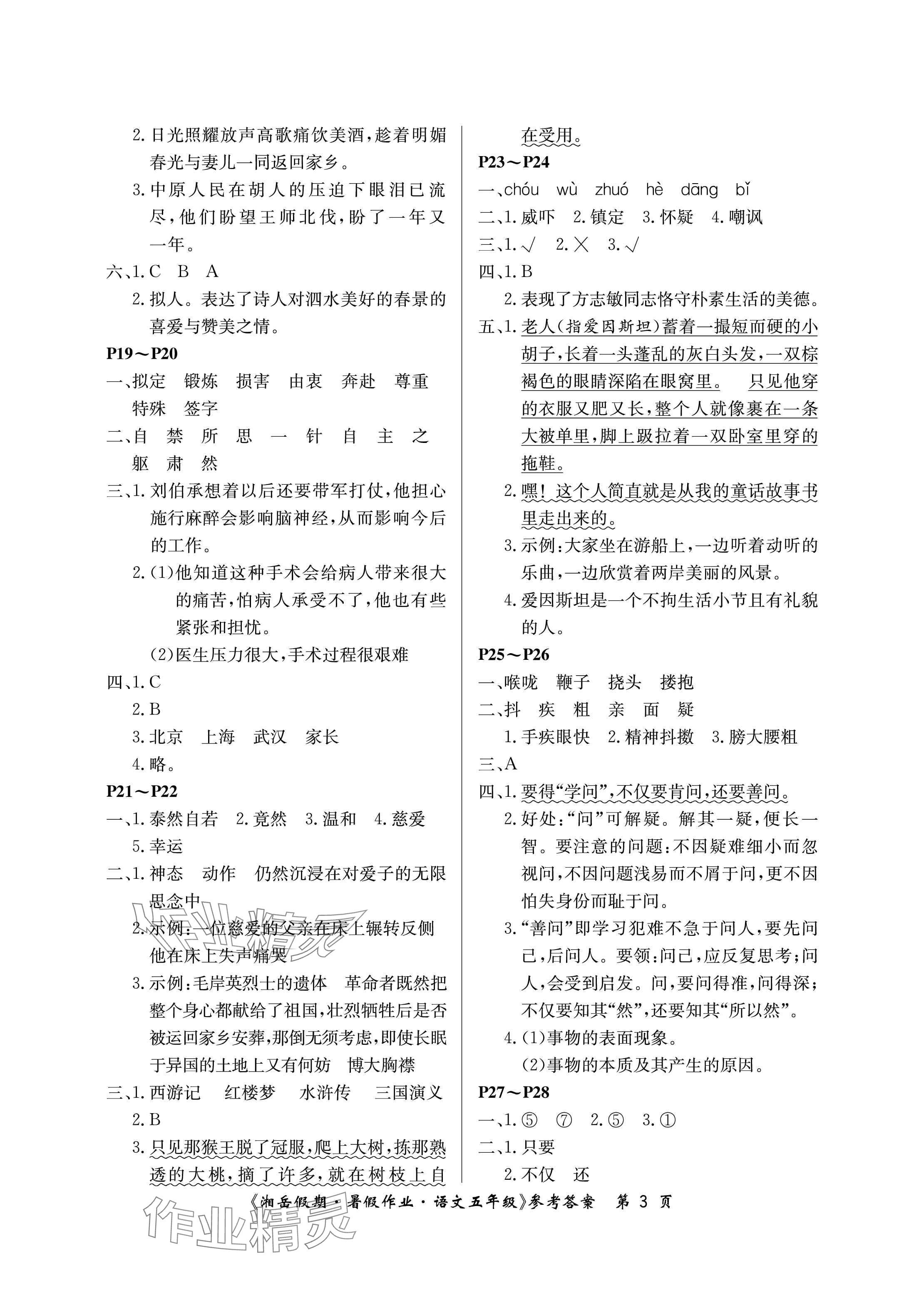 注:目前有些书本章节名称可能整理的还不是很完善,但都是按照顺序排列的,请同学们按照顺序仔细查找。练习册 2024年湘岳假期暑假作业五年级语文人教版 答案主要是用来给同学们做完题方便对答案用的,请勿直接抄袭。