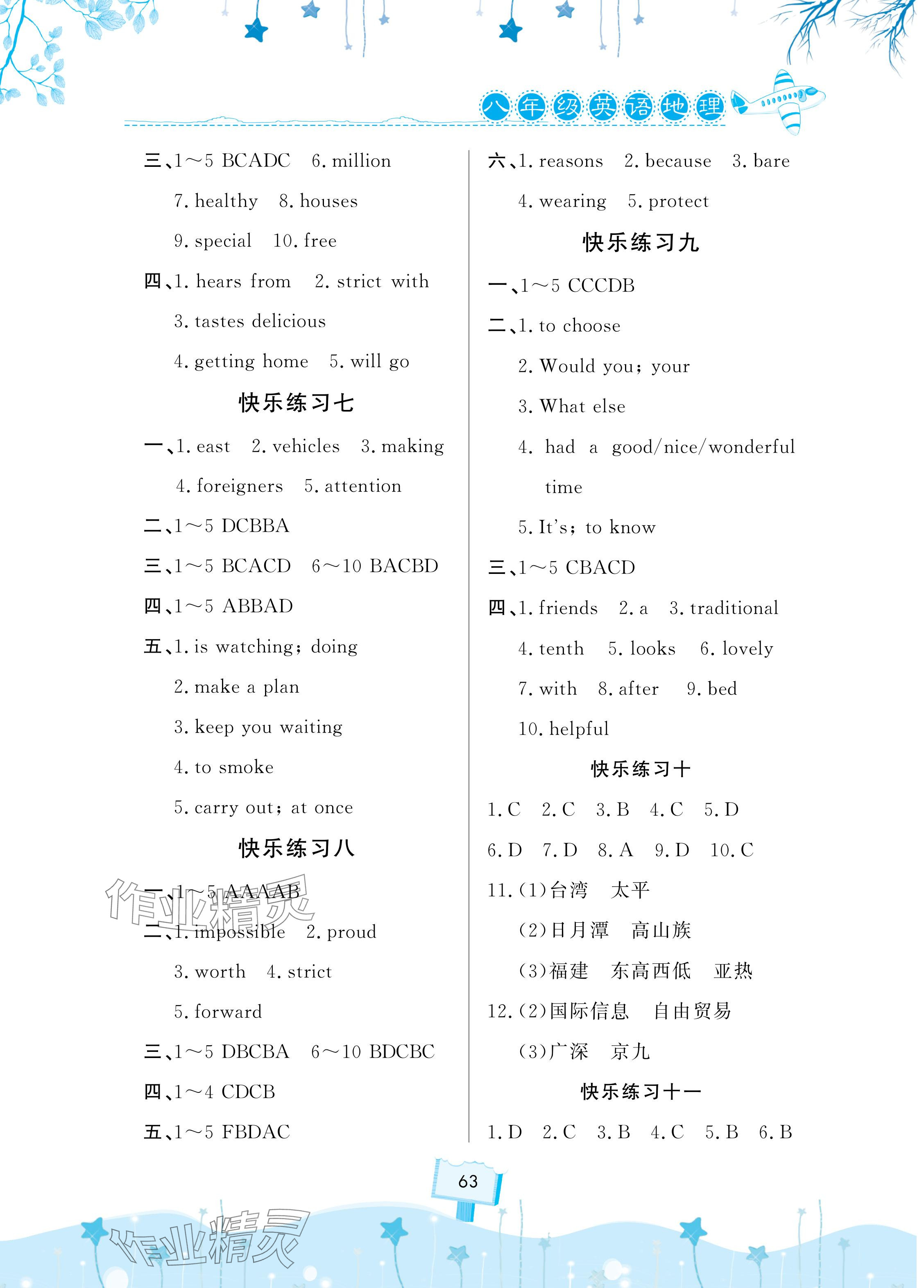 注:目前有些书本章节名称可能整理的还不是很完善,但都是按照顺序排列的,请同学们按照顺序仔细查找。练习册 2024年快乐暑假天天练八年级英语地理合订本 答案主要是用来给同学们做完题方便对答案用的,请勿直接抄袭。