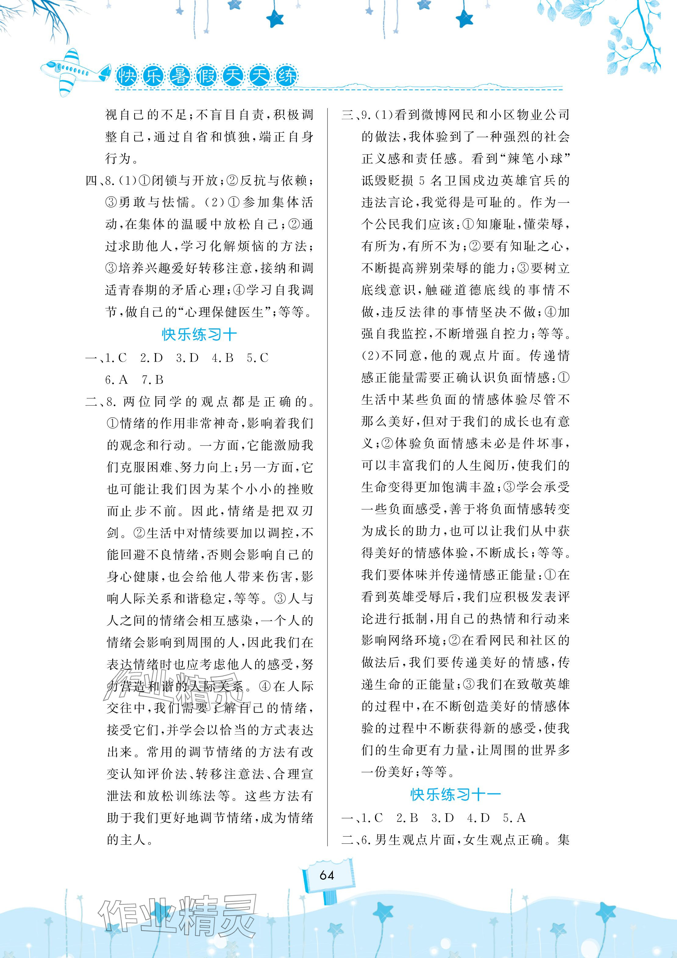 注:目前有些书本章节名称可能整理的还不是很完善,但都是按照顺序排列的,请同学们按照顺序仔细查找。练习册 2024年快乐暑假天天练七年级语文道法历史合订本 答案主要是用来给同学们做完题方便对答案用的,请勿直接抄袭。