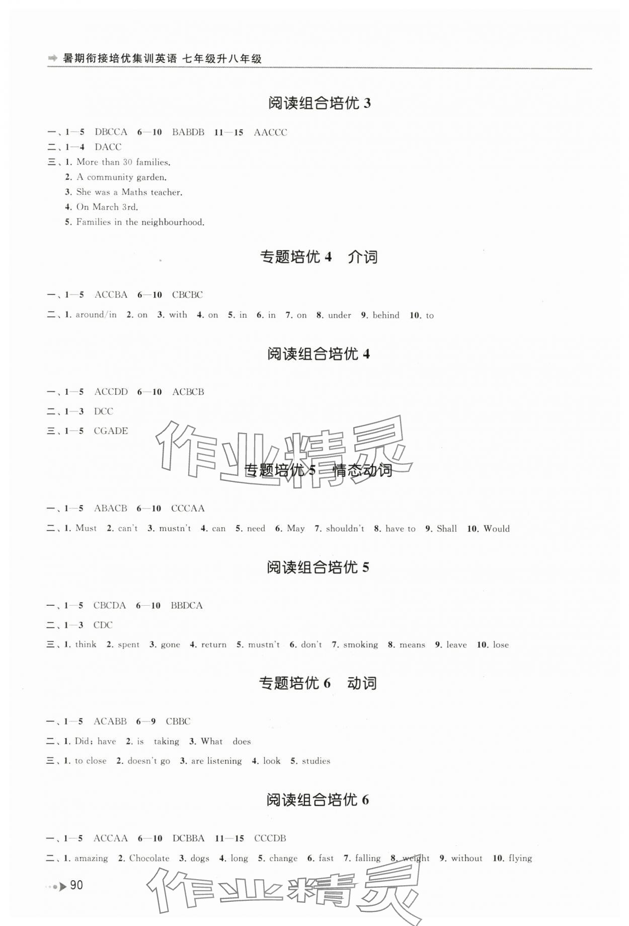 注:目前有些书本章节名称可能整理的还不是很完善,但都是按照顺序排列的,请同学们按照顺序仔细查找。练习册 2024年暑期衔接培优集训七年级升八年级英语 答案主要是用来给同学们做完题方便对答案用的,请勿直接抄袭。