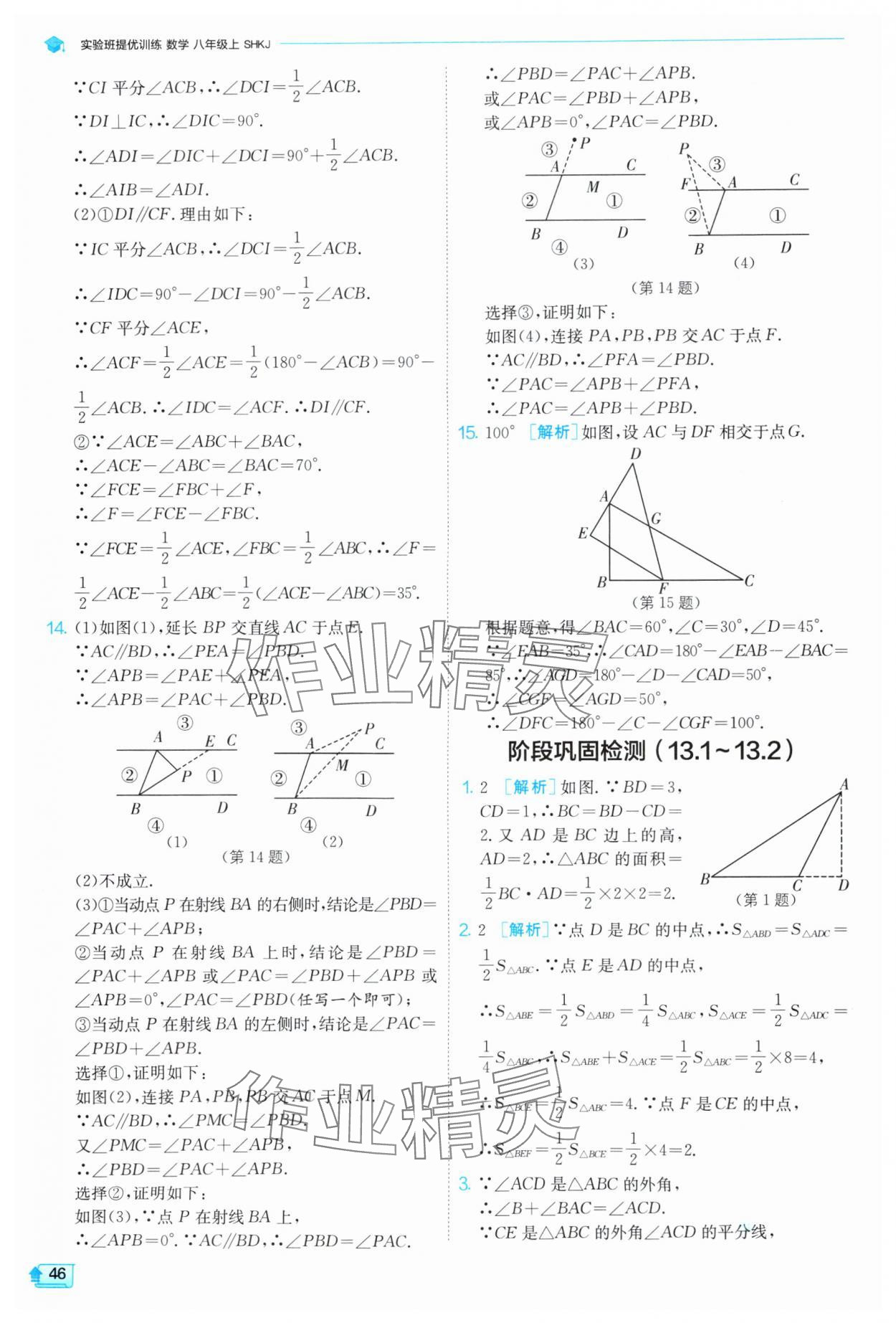 注:目前有些书本章节名称可能整理的还不是很完善,但都是按照顺序排列的,请同学们按照顺序仔细查找。练习册 2024年实验班提优训练八年级数学上册沪科版 答案主要是用来给同学们做完题方便对答案用的,请勿直接抄袭。