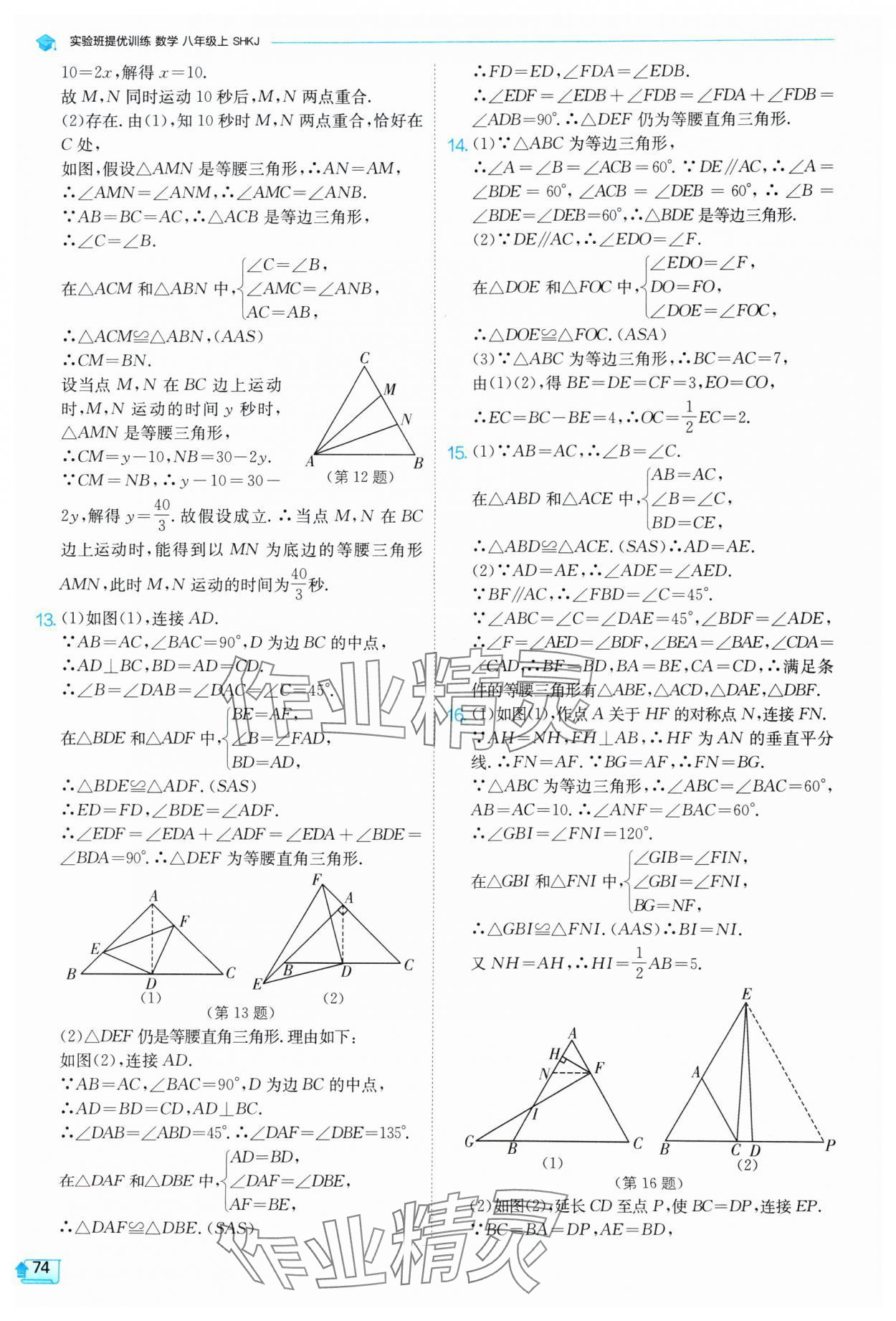 注:目前有些书本章节名称可能整理的还不是很完善,但都是按照顺序排列的,请同学们按照顺序仔细查找。练习册 2024年实验班提优训练八年级数学上册沪科版 答案主要是用来给同学们做完题方便对答案用的,请勿直接抄袭。