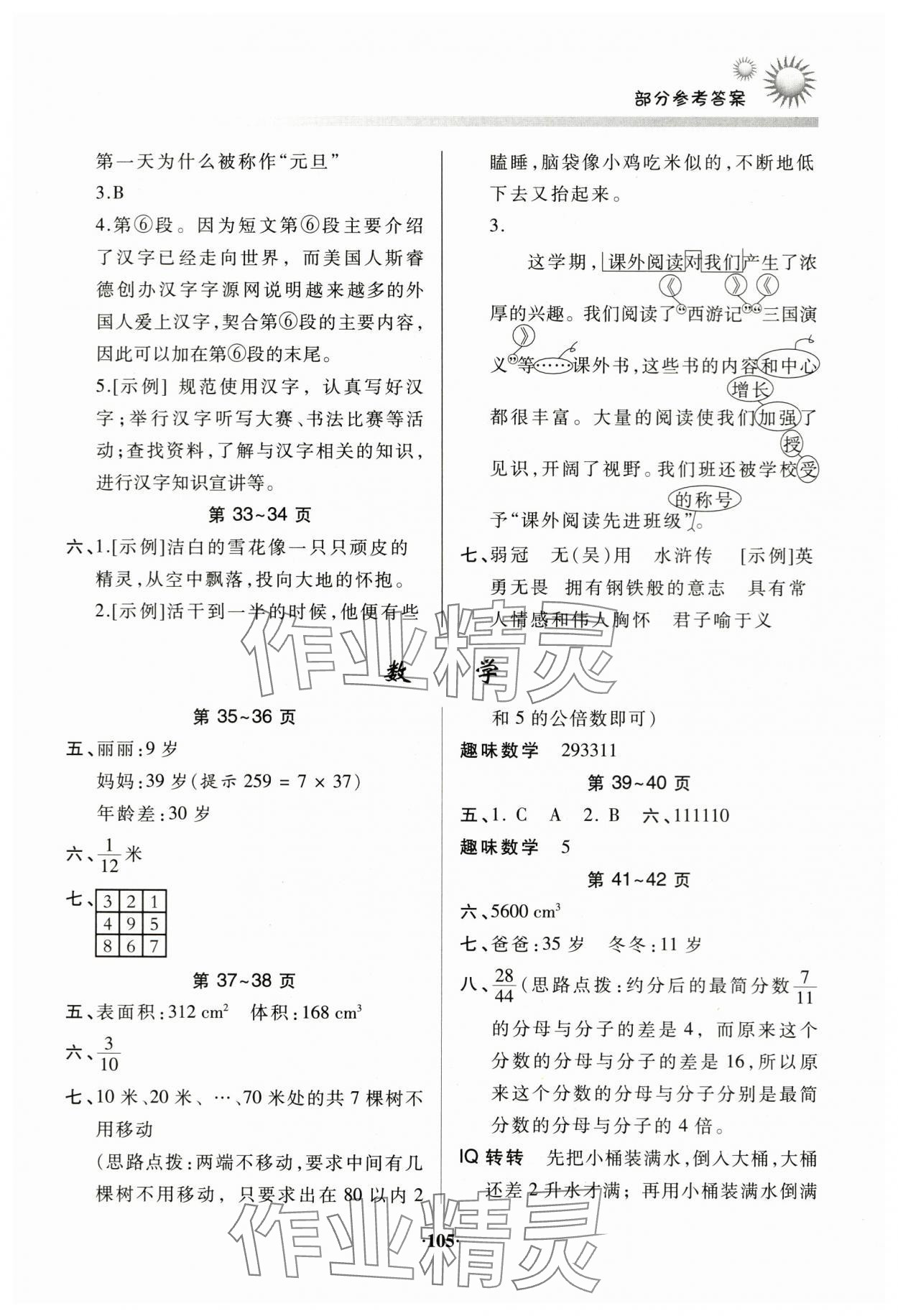 注:目前有些书本章节名称可能整理的还不是很完善,但都是按照顺序排列的,请同学们按照顺序仔细查找。练习册 2024年暑假作业假期读书生活五年级合订本 答案主要是用来给同学们做完题方便对答案用的,请勿直接抄袭。