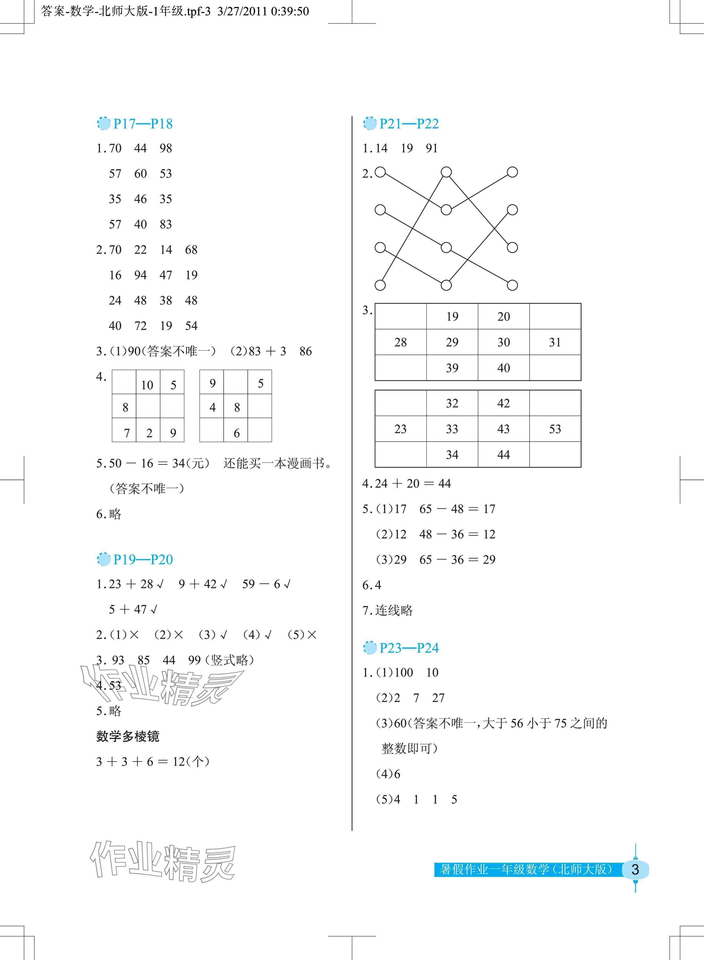 注:目前有些书本章节名称可能整理的还不是很完善,但都是按照顺序排列的,请同学们按照顺序仔细查找。练习册 2024年暑假作业长江少年儿童出版社一年级数学北师大版 答案主要是用来给同学们做完题方便对答案用的,请勿直接抄袭。