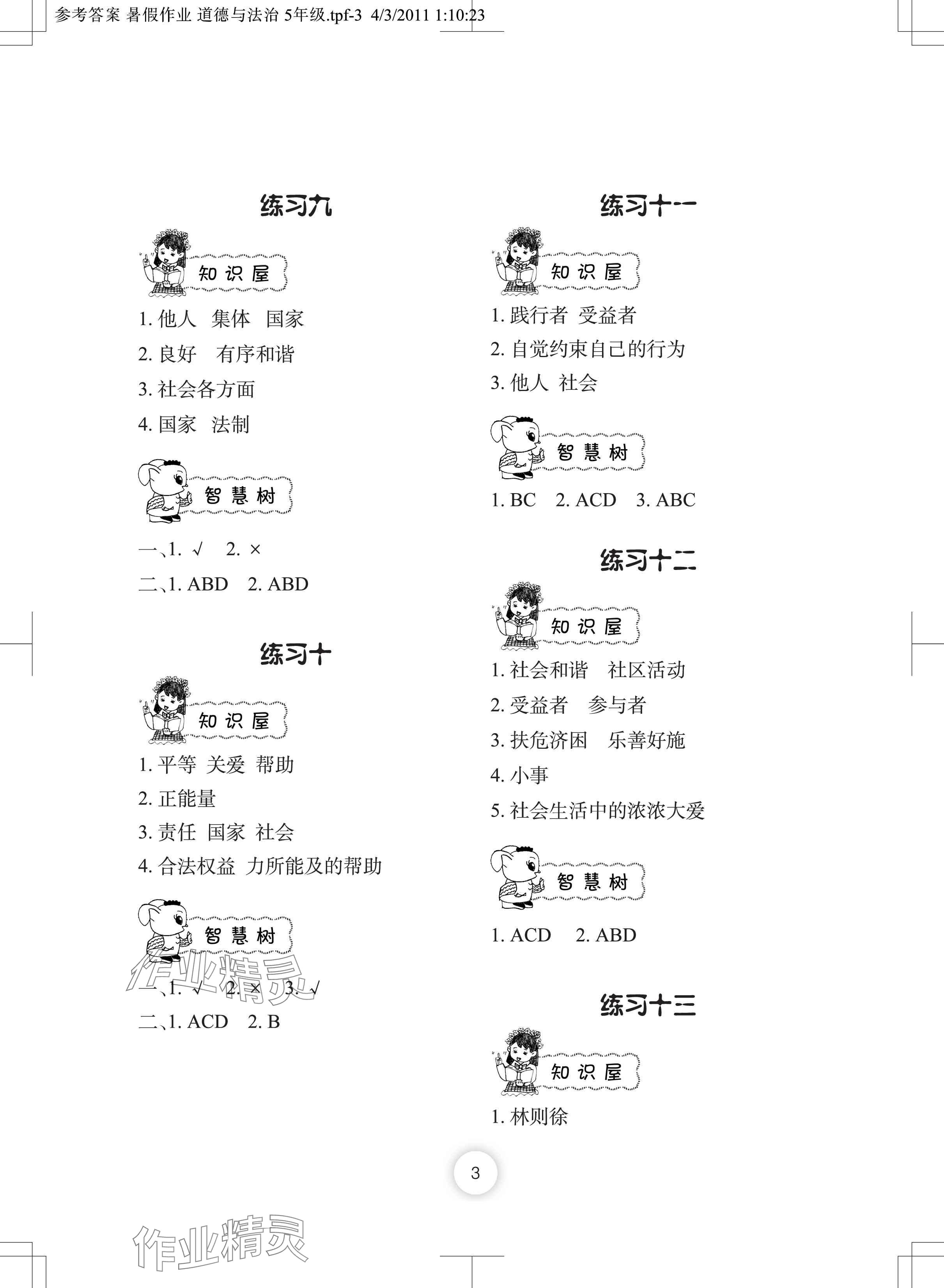 2024年暑假作业长江少年儿童出版社五年级道德与法治人教版