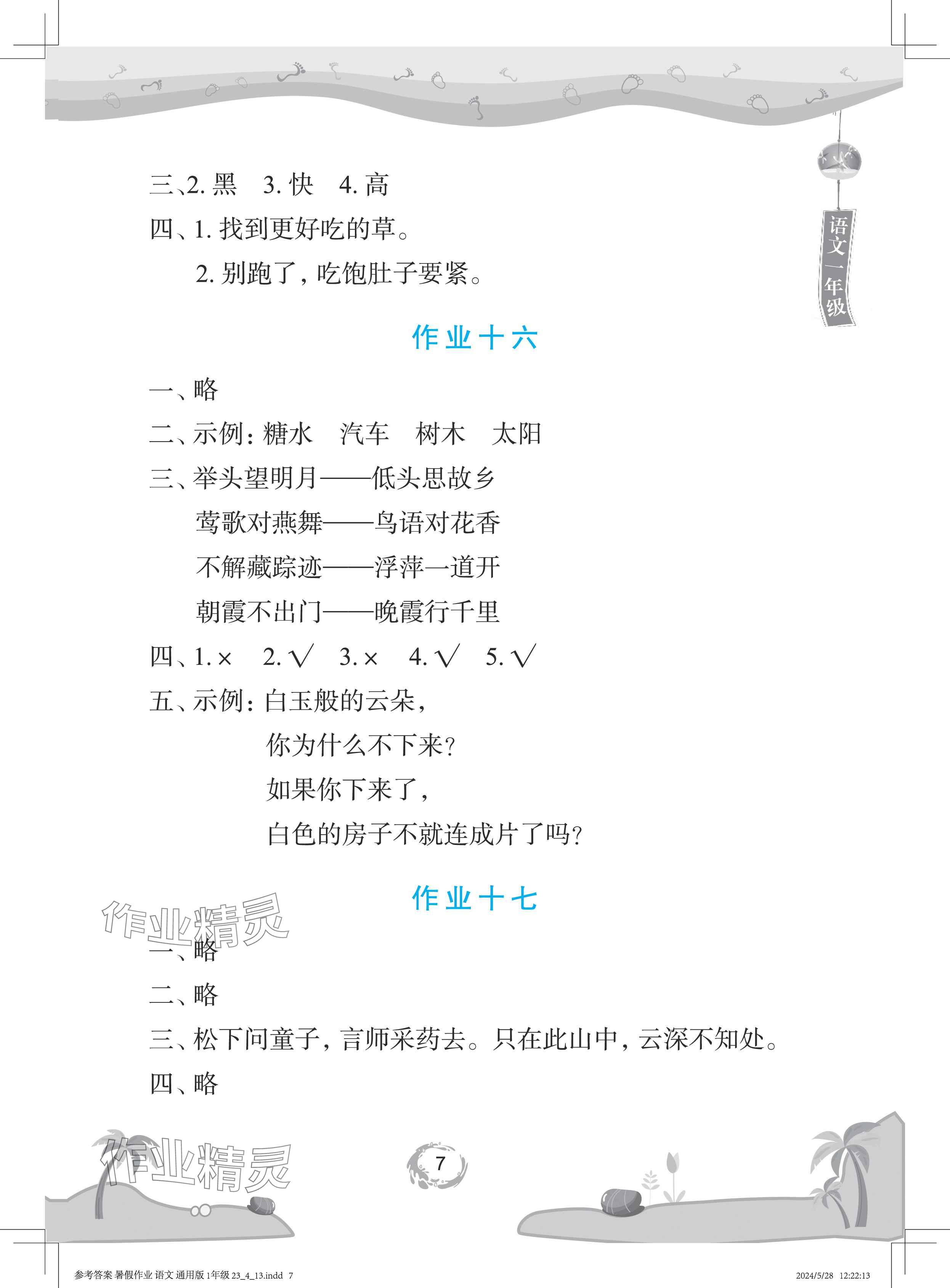 注:目前有些书本章节名称可能整理的还不是很完善,但都是按照顺序排列的,请同学们按照顺序仔细查找。练习册 2024年暑假作业长江少年儿童出版社一年级语文 答案主要是用来给同学们做完题方便对答案用的,请勿直接抄袭。