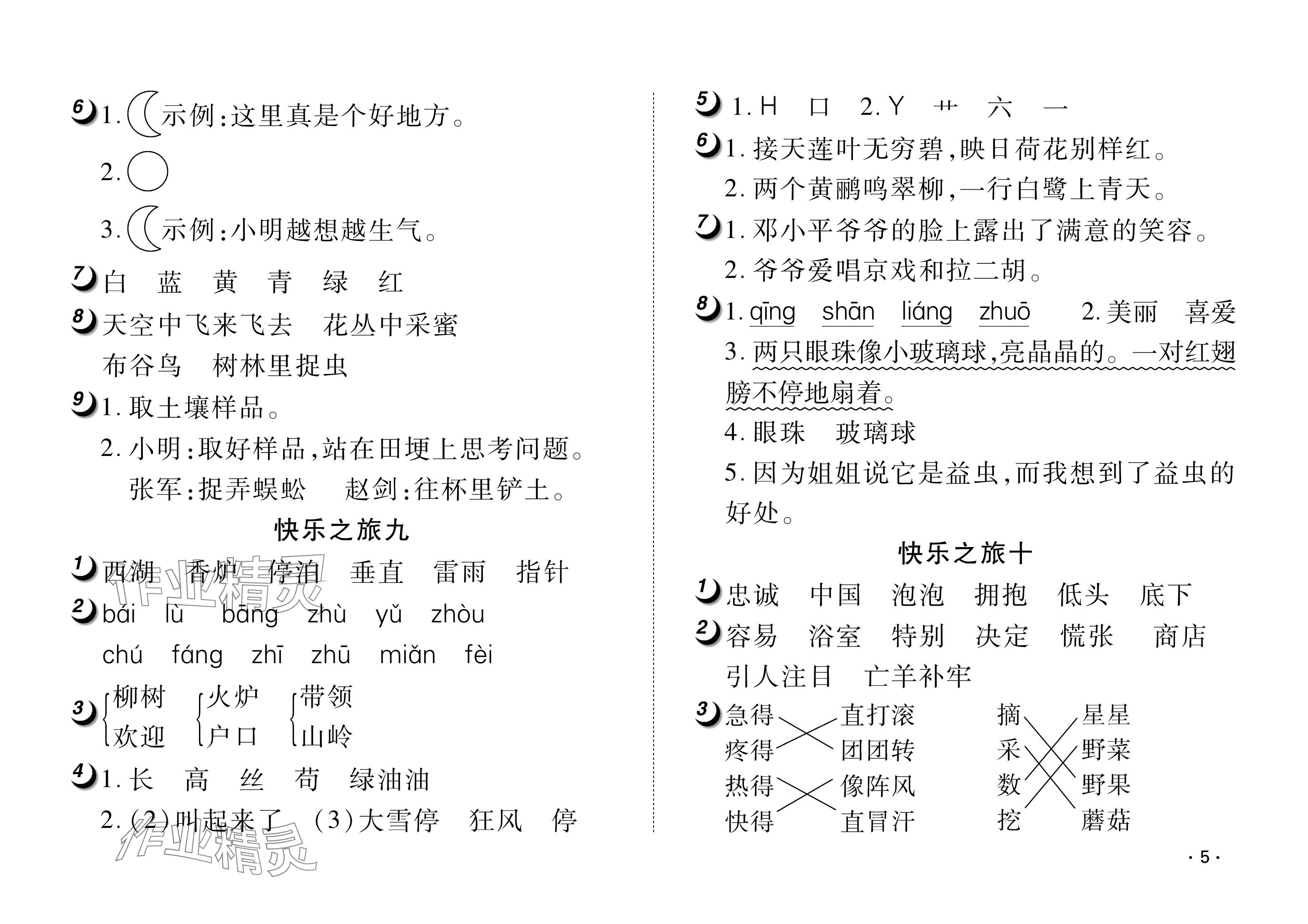 注:目前有些书本章节名称可能整理的还不是很完善,但都是按照顺序排列的,请同学们按照顺序仔细查找。练习册 2024年Happy暑假作业快乐暑假武汉大学出版社二年级语文人教版 答案主要是用来给同学们做完题方便对答案用的,请勿直接抄袭。