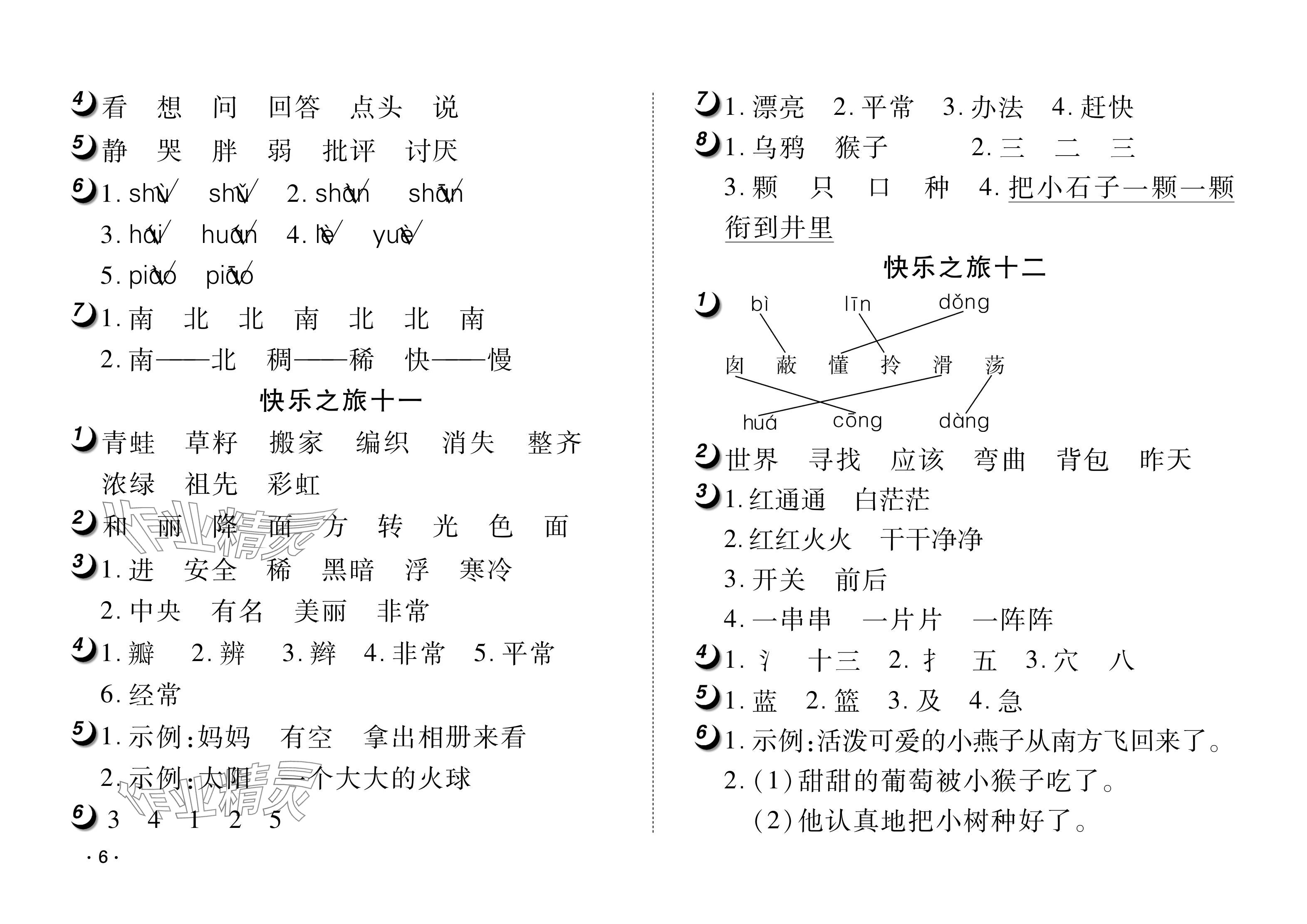 注:目前有些书本章节名称可能整理的还不是很完善,但都是按照顺序排列的,请同学们按照顺序仔细查找。练习册 2024年Happy暑假作业快乐暑假武汉大学出版社二年级语文人教版 答案主要是用来给同学们做完题方便对答案用的,请勿直接抄袭。