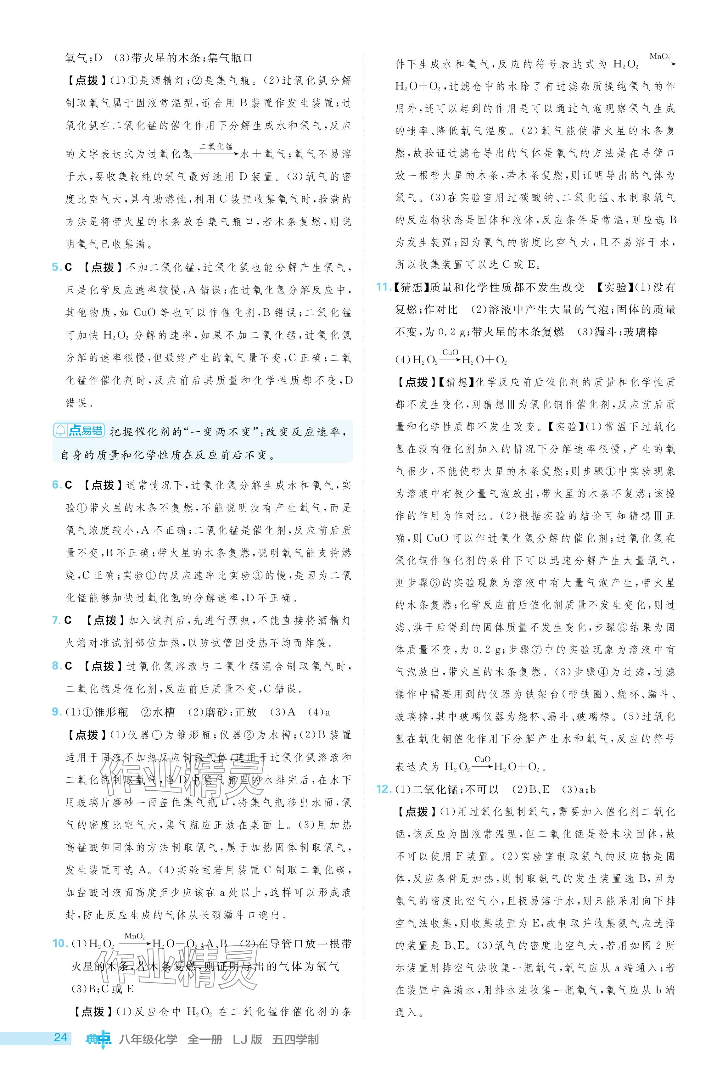 2024年综合应用创新题典中点八年级化学全一册鲁教版五四制