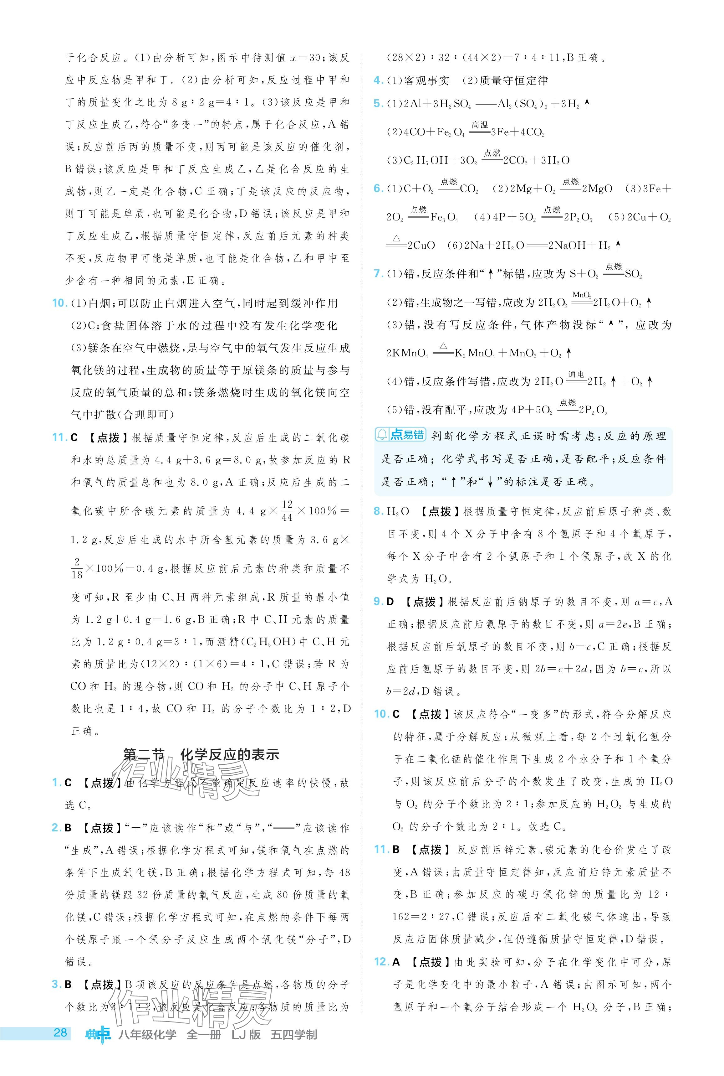 2024年综合应用创新题典中点八年级化学全一册鲁教版五四制