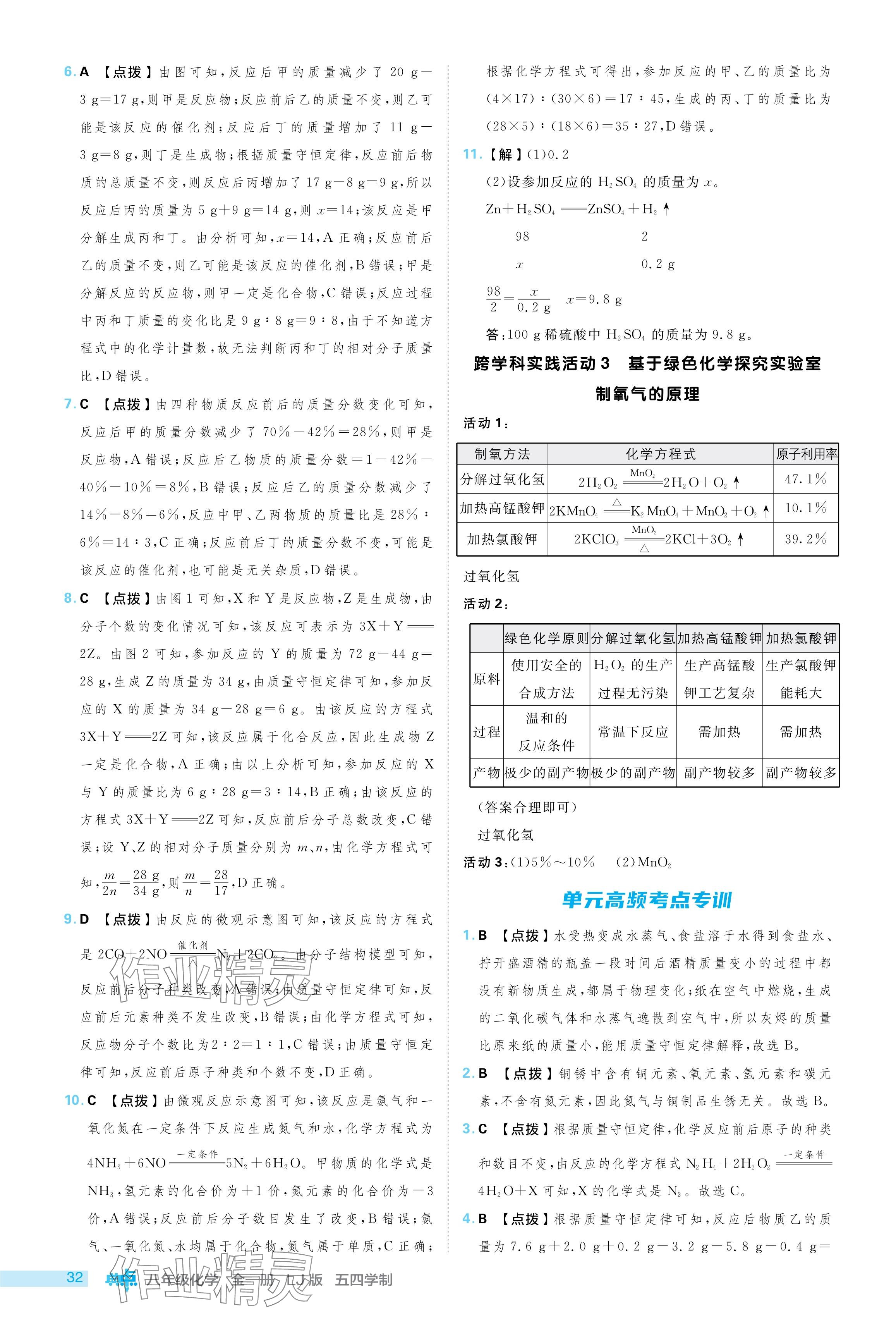 2024年综合应用创新题典中点八年级化学全一册鲁教版五四制