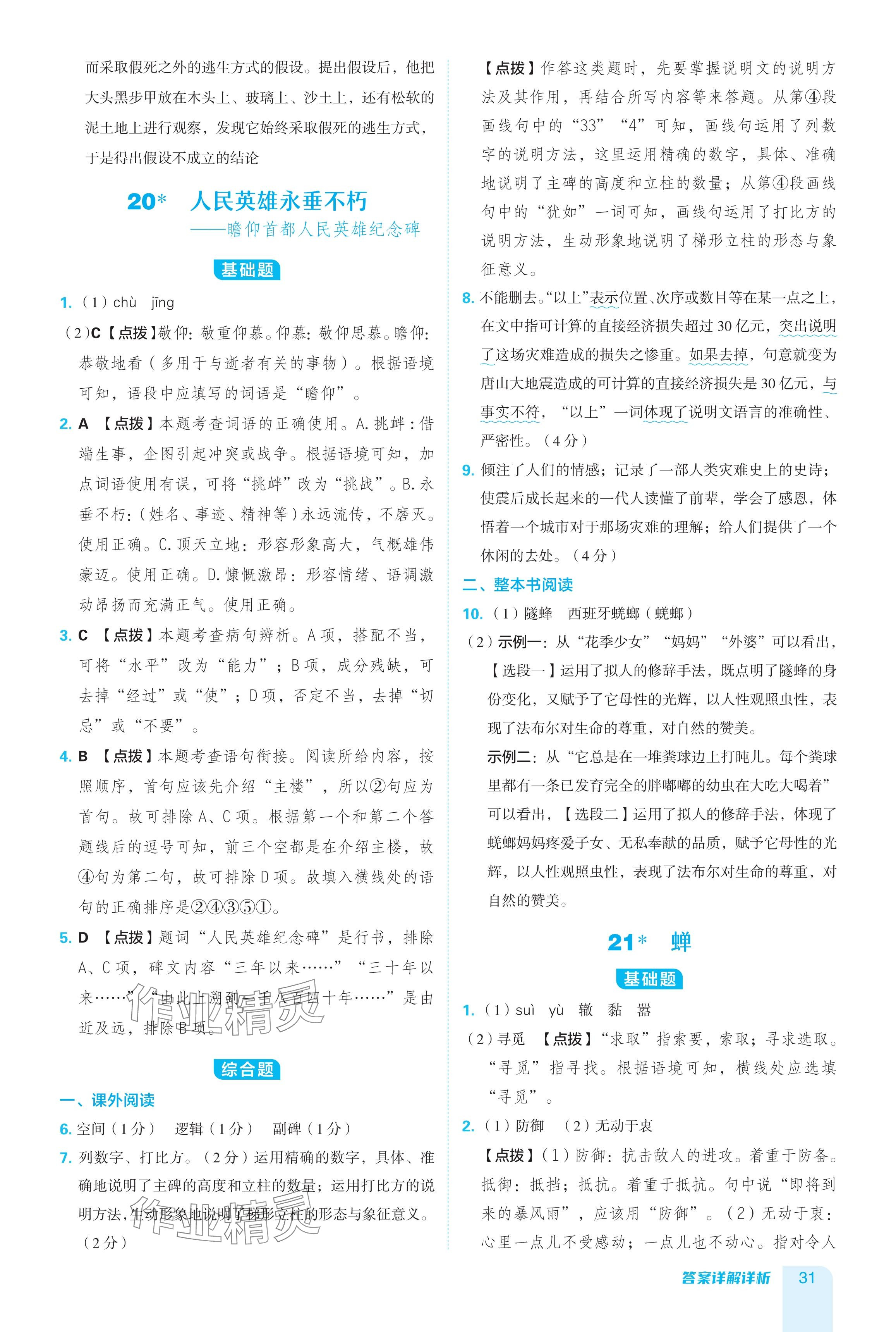 注:目前有些书本章节名称可能整理的还不是很完善,但都是按照顺序排列的,请同学们按照顺序仔细查找。练习册 2024年综合应用创新题典中点八年级语文上册人教版54制 答案主要是用来给同学们做完题方便对答案用的,请勿直接抄袭。